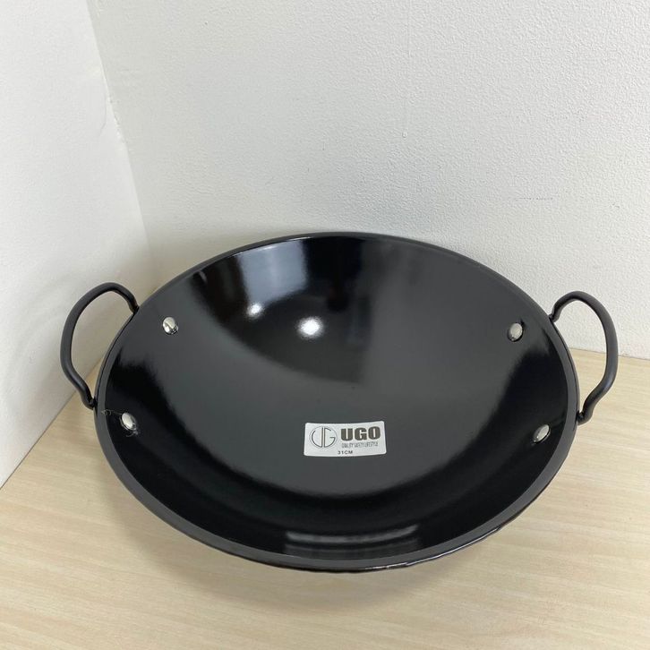 UGO Wajan Kuali Penggorengan Anti Lengket | Wook Enamel Hitam Serbaguna | Kuali Tebal Premium Multifungsi 22 cm - 43 Cm