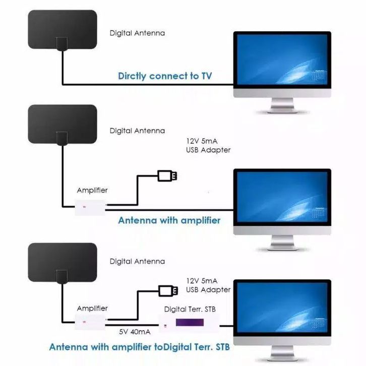 BEST QUALITY ANTENA TV DIGITAL INDOOR DVB-T2 25DB 4K HIGH GAIN