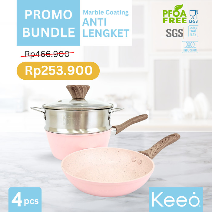 KEEO 16 CM MPASI KOMPLIT SET PANCI, WAJAN, KUKUSAN, TUTUP PINK