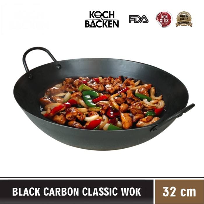 KOCH&BACKEN BLACK CARBON WOK CLASIC PRESEASONED 32CM - WAJAN PENGGORENGAN KUALI HITAM ANTI LENGKET - 1 PCS