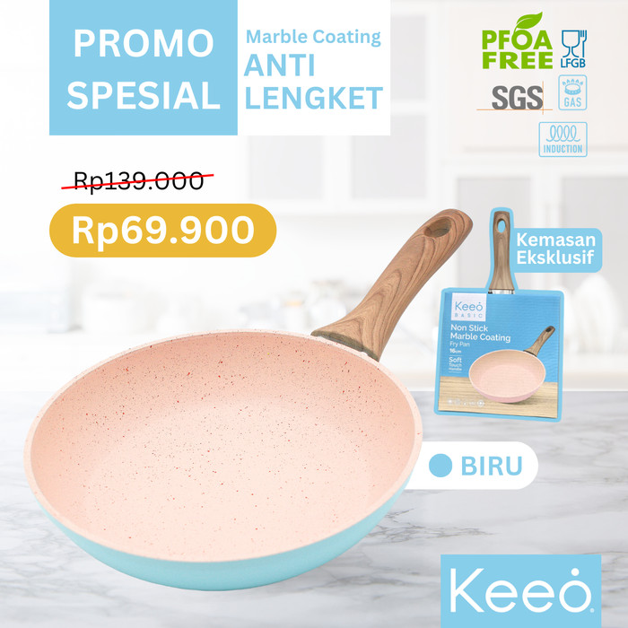 KEEO 16 CM WAJAN PENGGORENGAN ANTI LENGKET MARBLE GRANIT BIRU