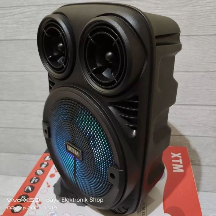 Speaker Bluetooth Karaoke XTM-3381 Free Mic 6,5Inci Salon Aktif Portable Radio Fm Speaker Wireless Led