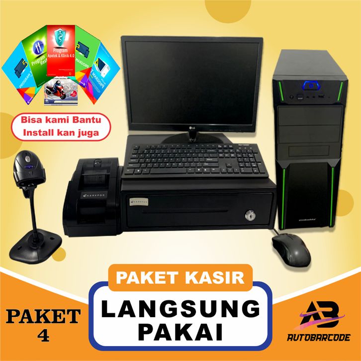 PAKET 4 Paket Mesin Kasir Komputer Full Set Komplit Langsung Pakai Pro9ram IPOS Toko Minimarket