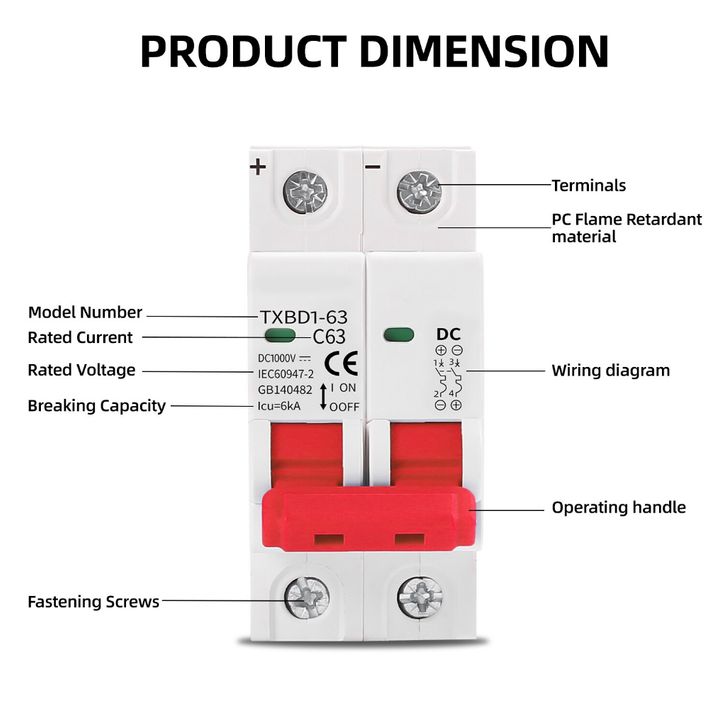 SAKELAR DC MCB 2P 1000V – PEMUTUS ARUS MINI TENAGA SURYA UNTUK SISTEM PV, KAPASITAS 6A-63A, COCOK BATERAI & PANEL SURYA