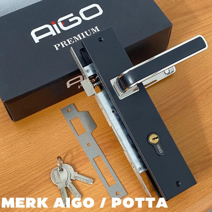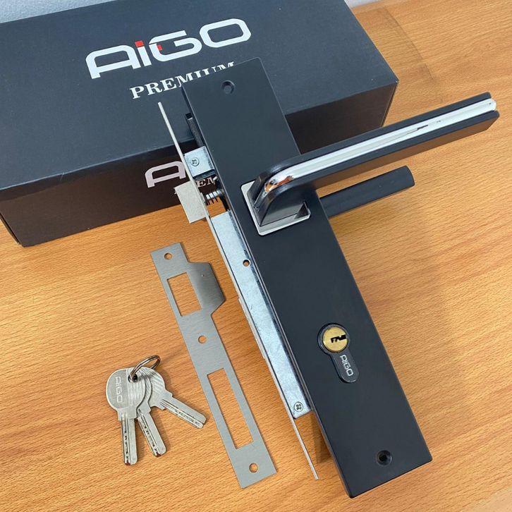 1 SET KUNCI PINTU RUMAH KOTAK LENGKUNG HITAM DOFF GAGANG PINTU BESAR 25CM MINIMALIS