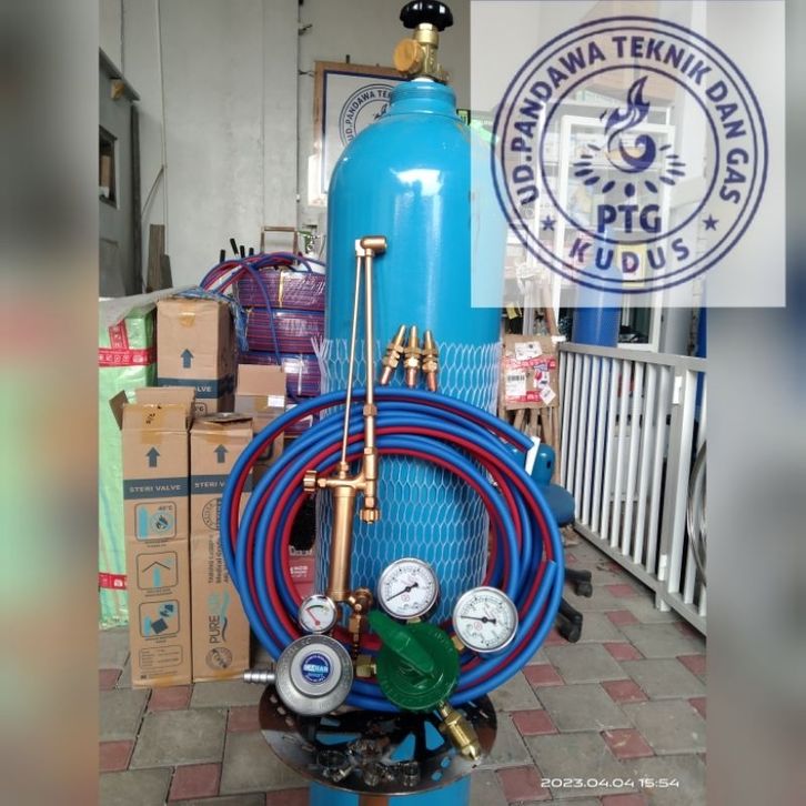 Paket komplit alat las potong + tabung oksigen besar 6m3 + isi siap pakai
