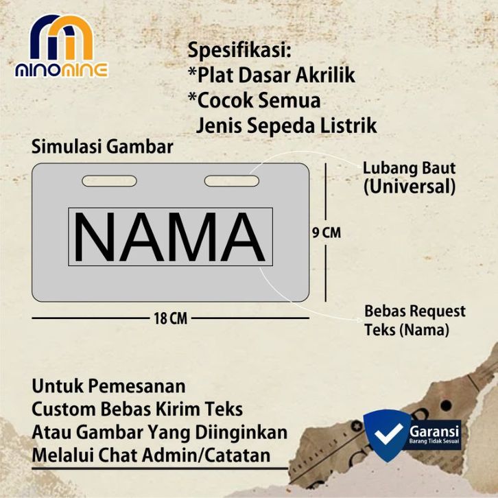 PLAT NOMOR SPEDA/SEPEDA LISTRIK UNIVERSAL SEMUA JENIS SEPEDA LISTRIK BAHAN HOLO9ram STICKER CUTTING