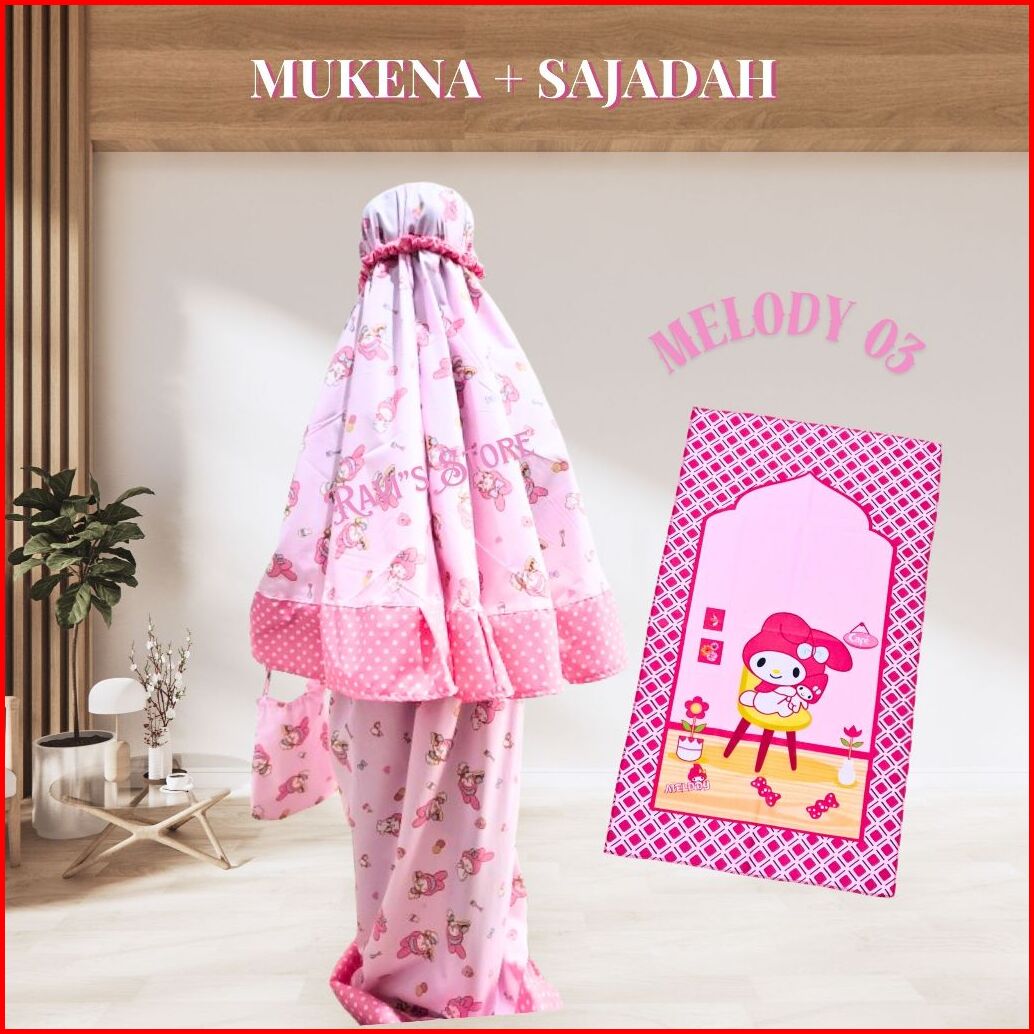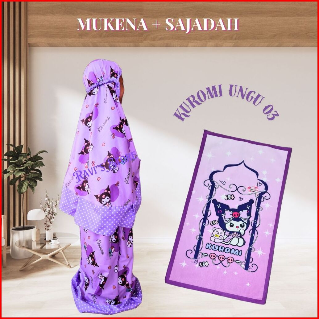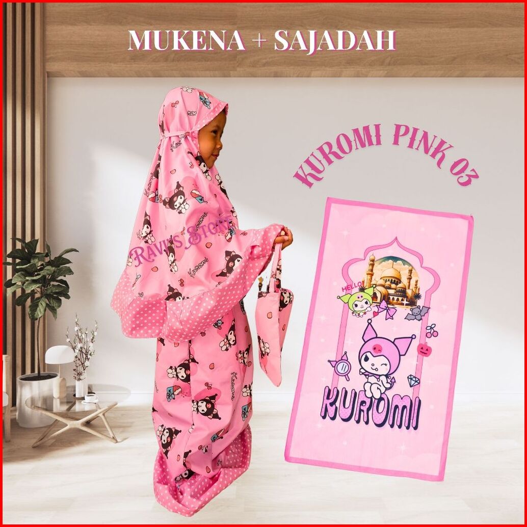Mukena Anak Perempuan Sajadah Usia 1-14 Katun Mikro Kuromi Labubu Melody Cinnamoroll Kuda Poni Lotso Unicorn Hello Kitty
