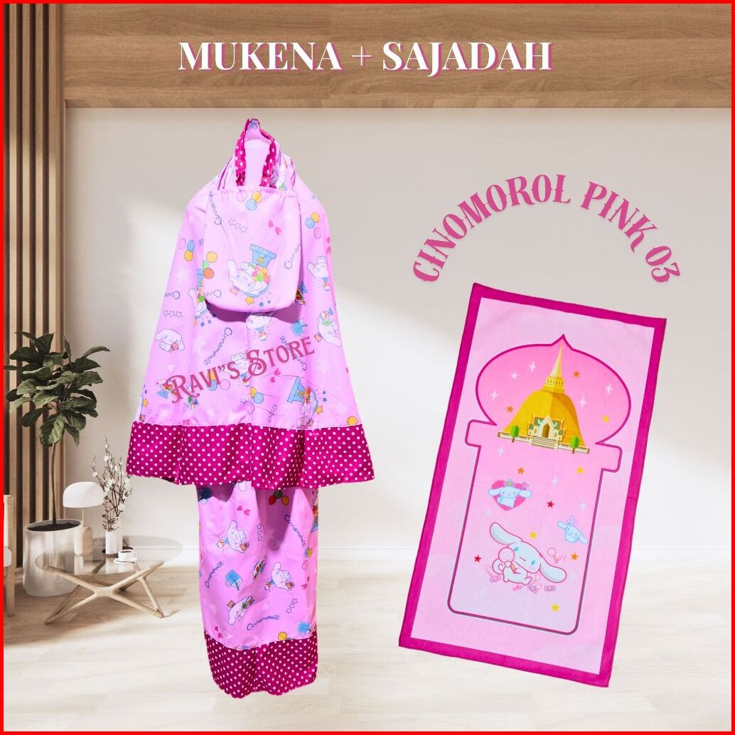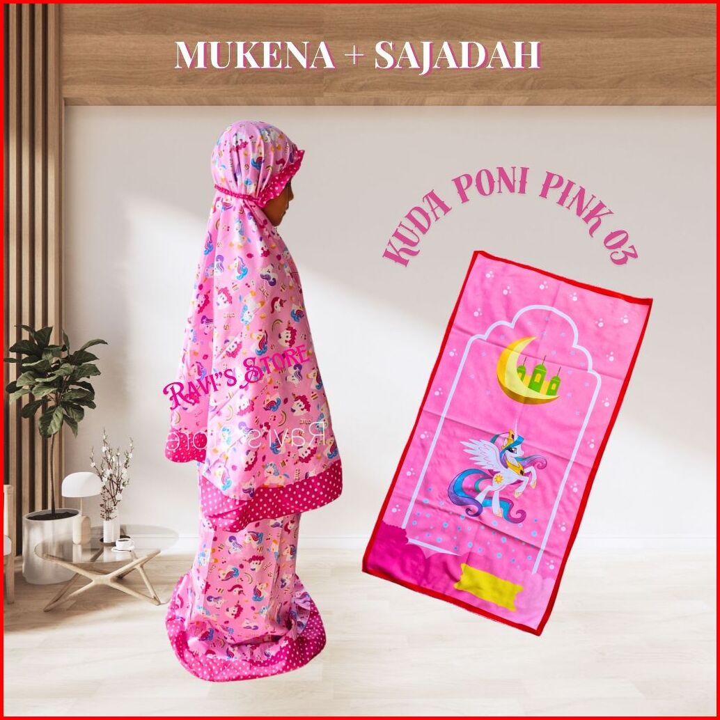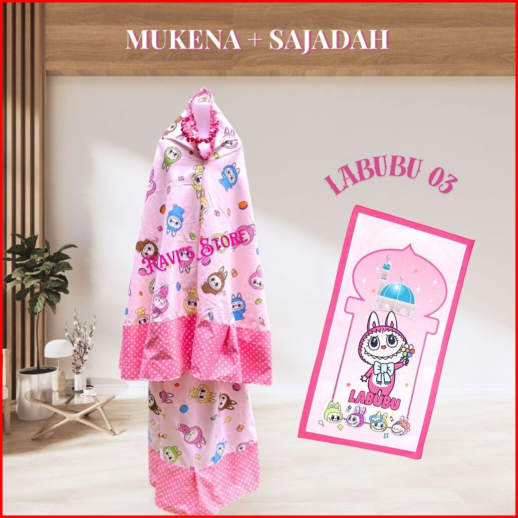 Mukena Anak Perempuan Sajadah Usia 1-14 Katun Mikro Kuromi Labubu Melody Cinnamoroll Kuda Poni Lotso Unicorn Hello Kitty