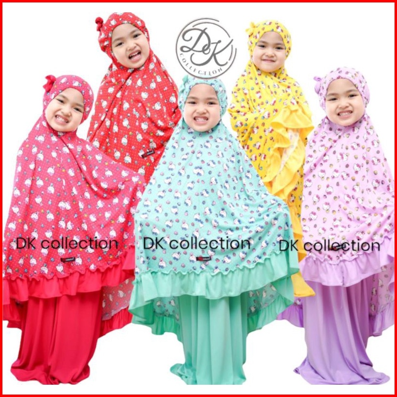 Mukena Anak Sublim Motif Hello Kitty Lucu Bahan Jersey 3-6 Tahun