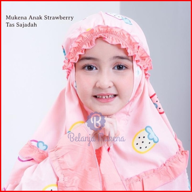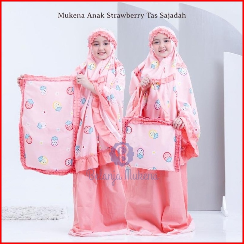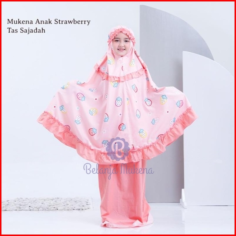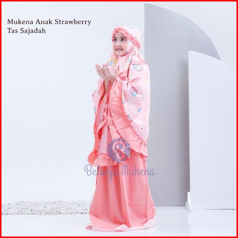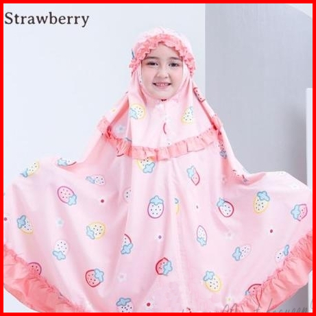 Mukena Anak Karakter Umur 2 3 4 5 6 7 8 9 10 11 12 Tahun Set Sajadah Strawberry Mukenah Anak Bayi Motif Stroberi Lucu Mu