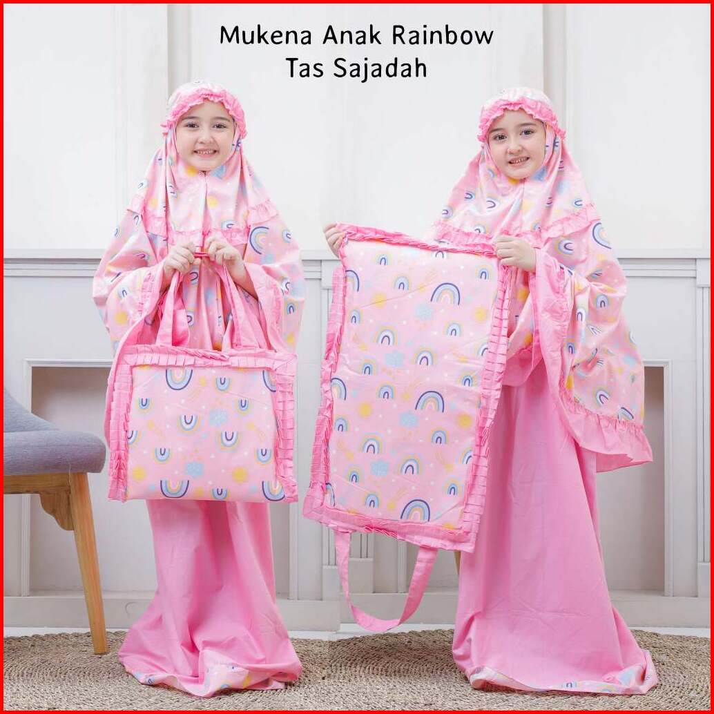 Melika - Mukena Anak Katun Karakter Rainbow Tas Sajadah