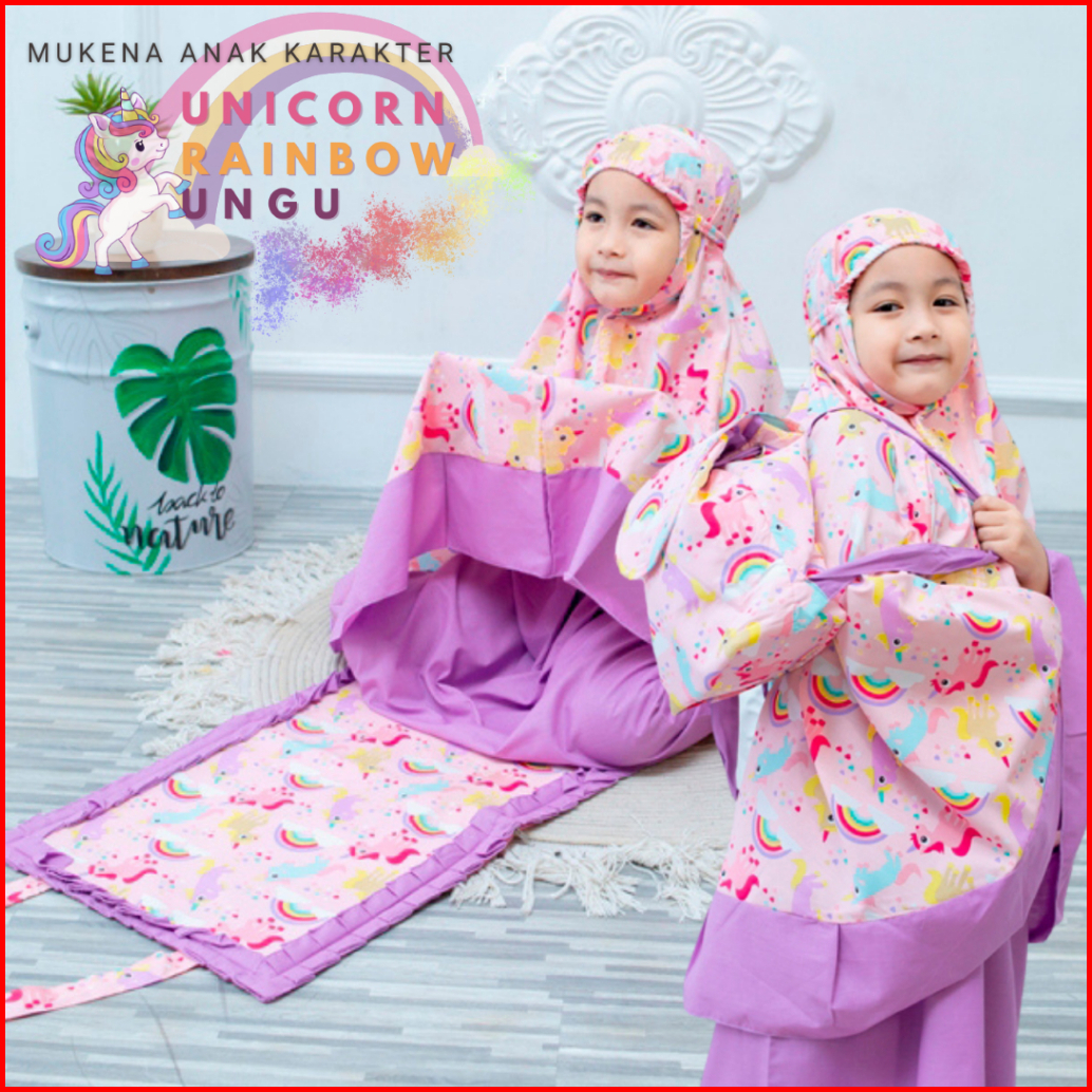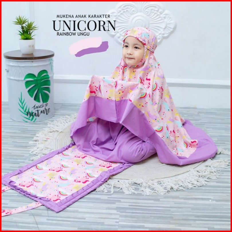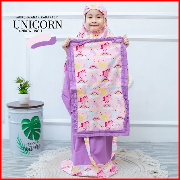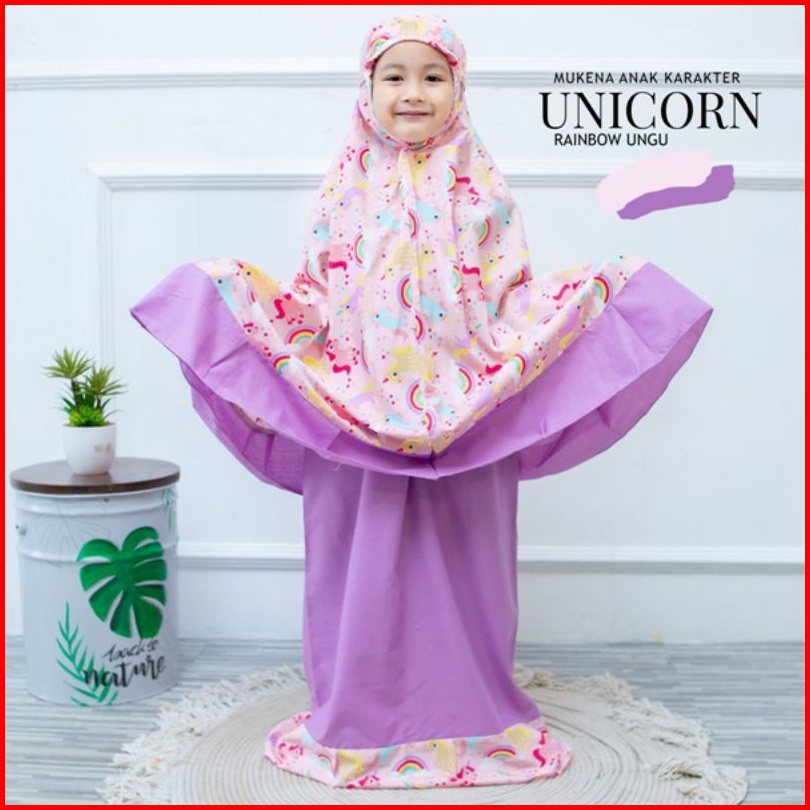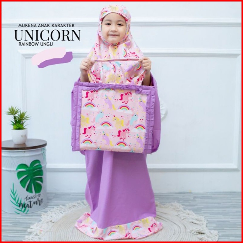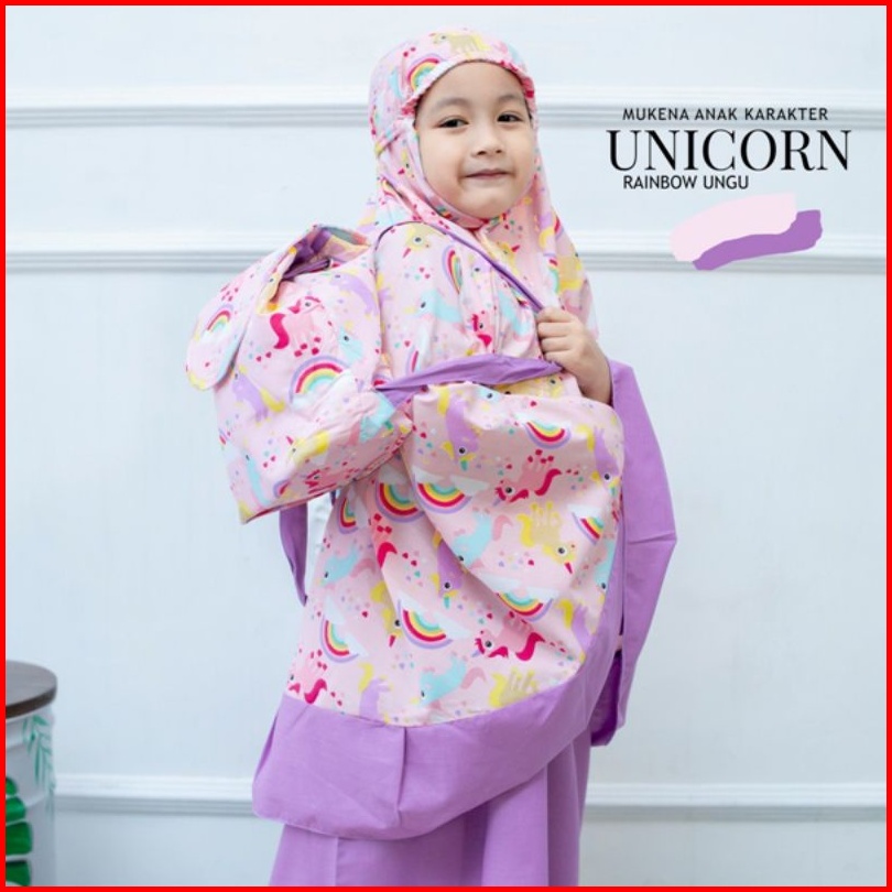 Mukena Anak Katun Karakter Unicorn Rainbow Ungu