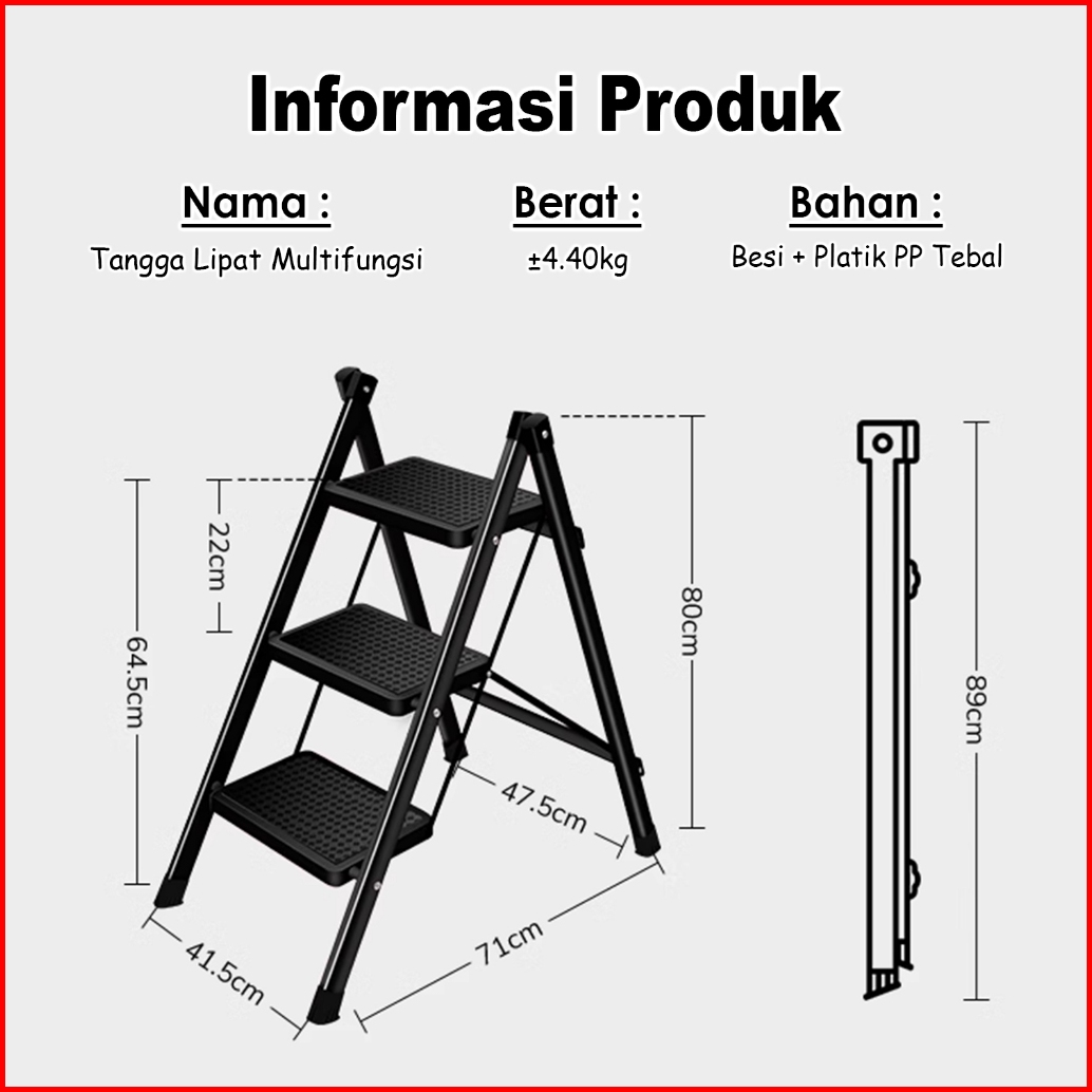 Tangga Lipat Besi Rumah Tangga Dengan Pegangan 3 Susun With Holder Household Ladder T1a1