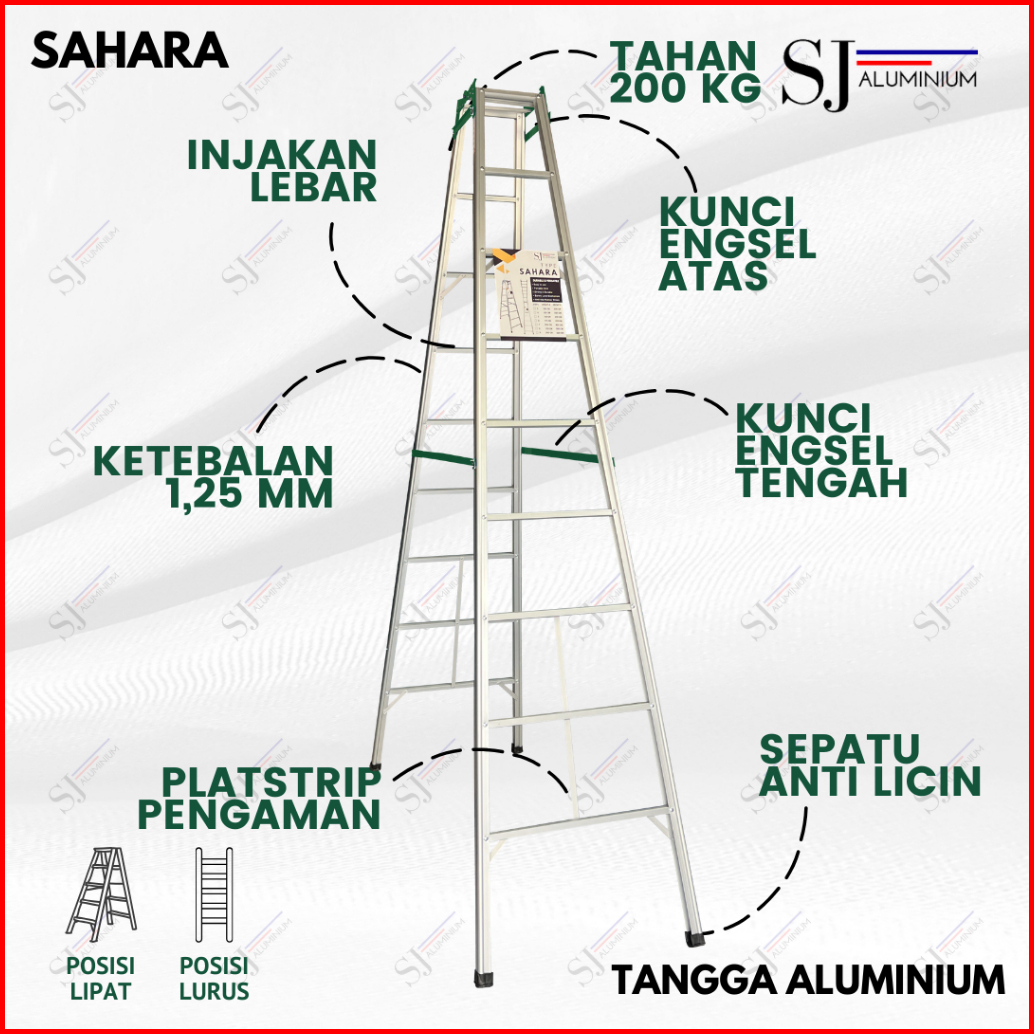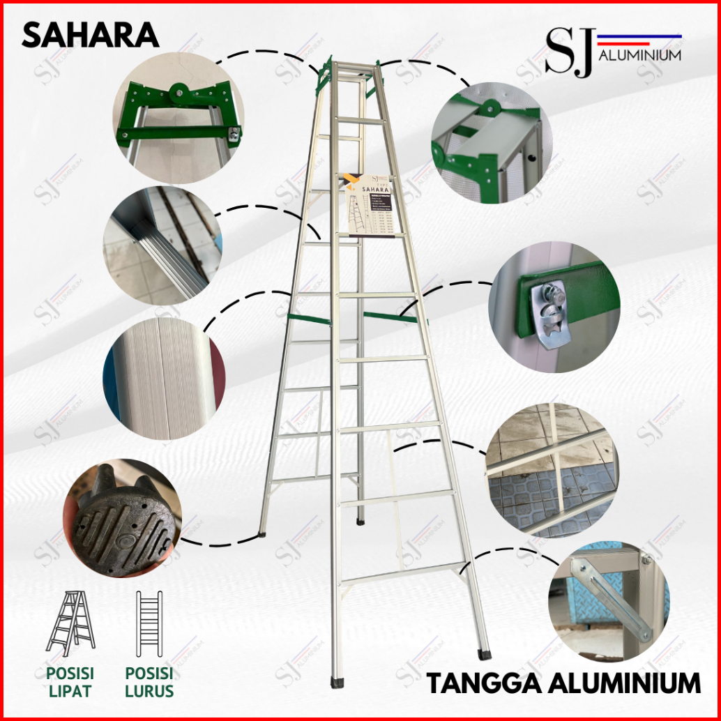Sahara - Tangga Lipat Aluminium Tangga Lipat Jumbo Sahara Hijau 7 Ukuran - Tahan Beban 200kg