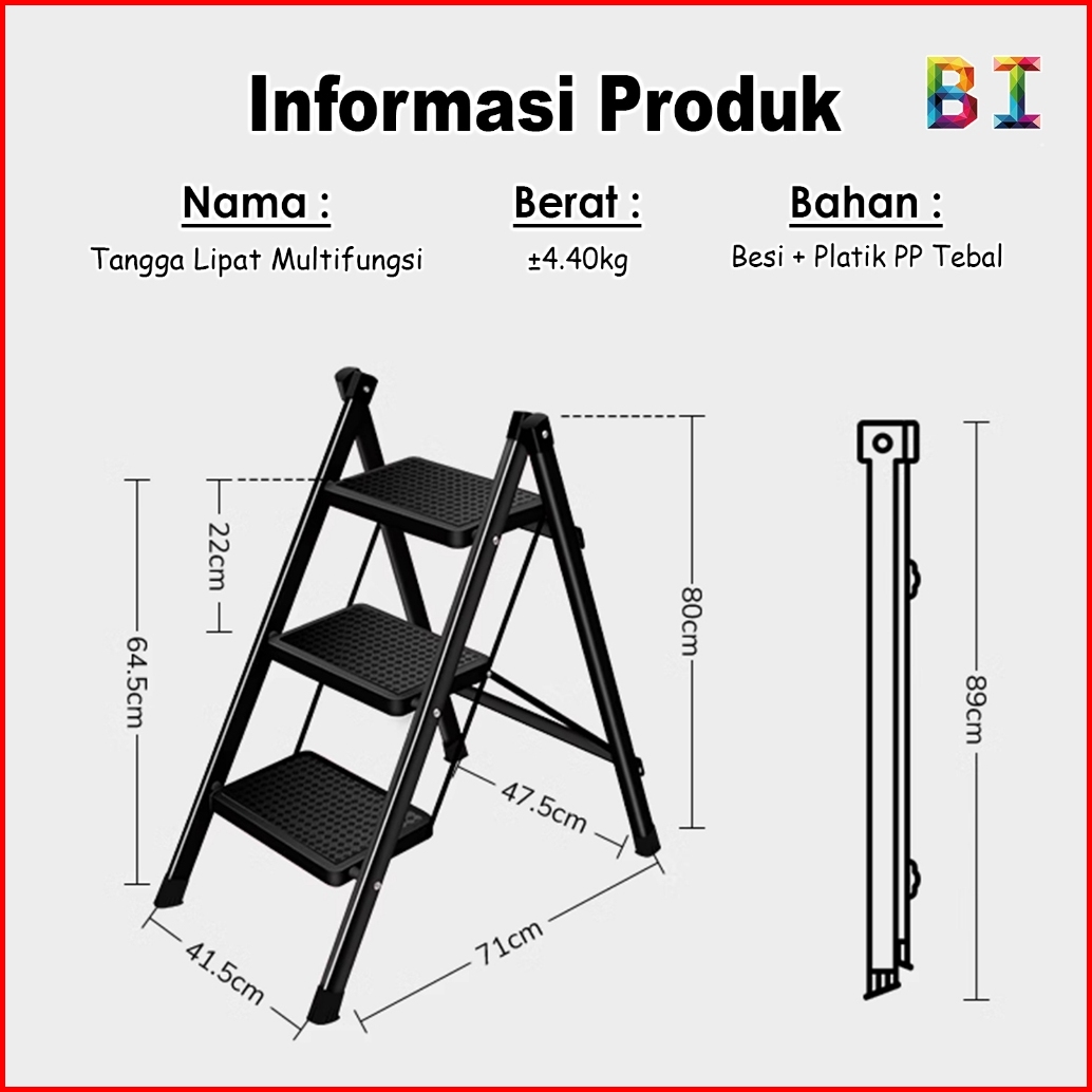 Baritoindo Tangga Lipat Multifungsi 3 Step 4 Step Besi Kuat Kokoh Tangga Rumah Serbaguna Dapat Untuk Menyimpan Barang Es