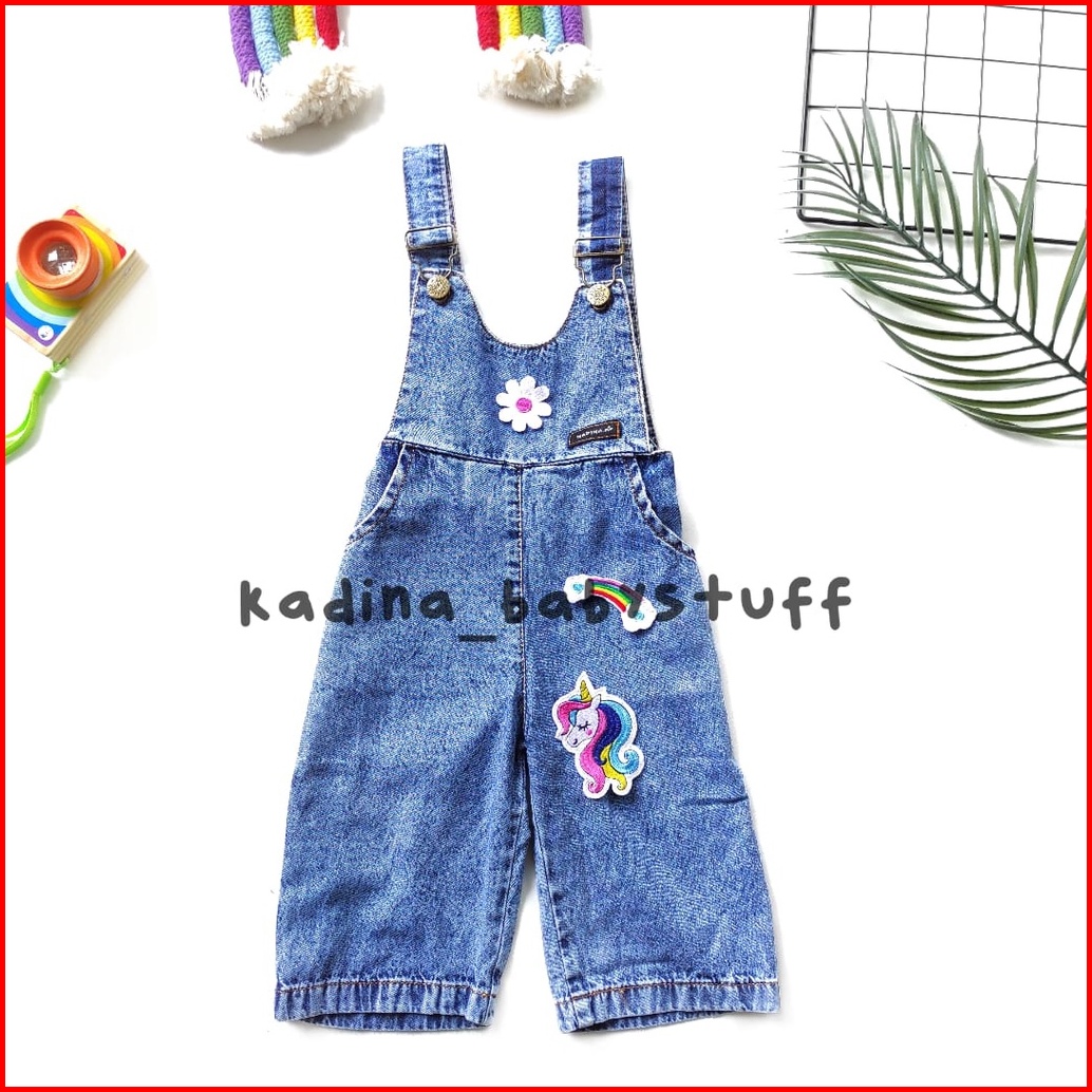 Overall Jeans Anak Snowblue Motif Unicorn Rainbow Butterfly Overall Kulot Perempuan Jumpsuit Jeans
