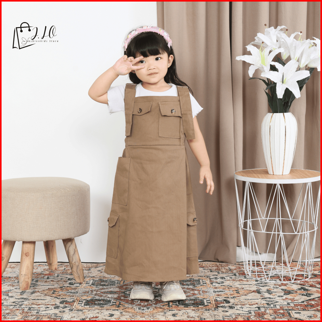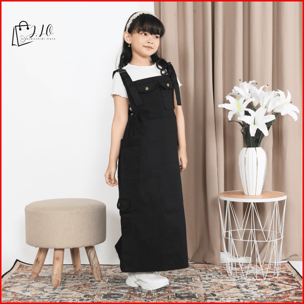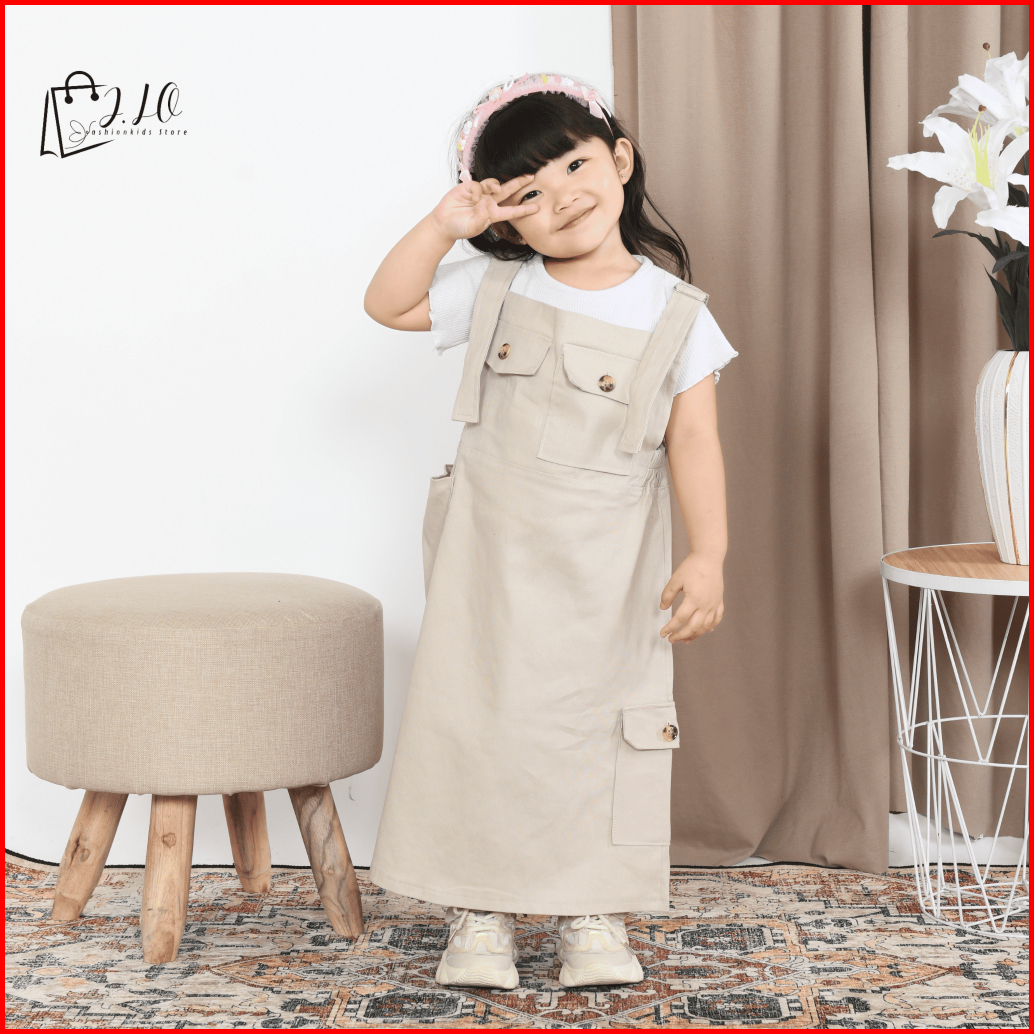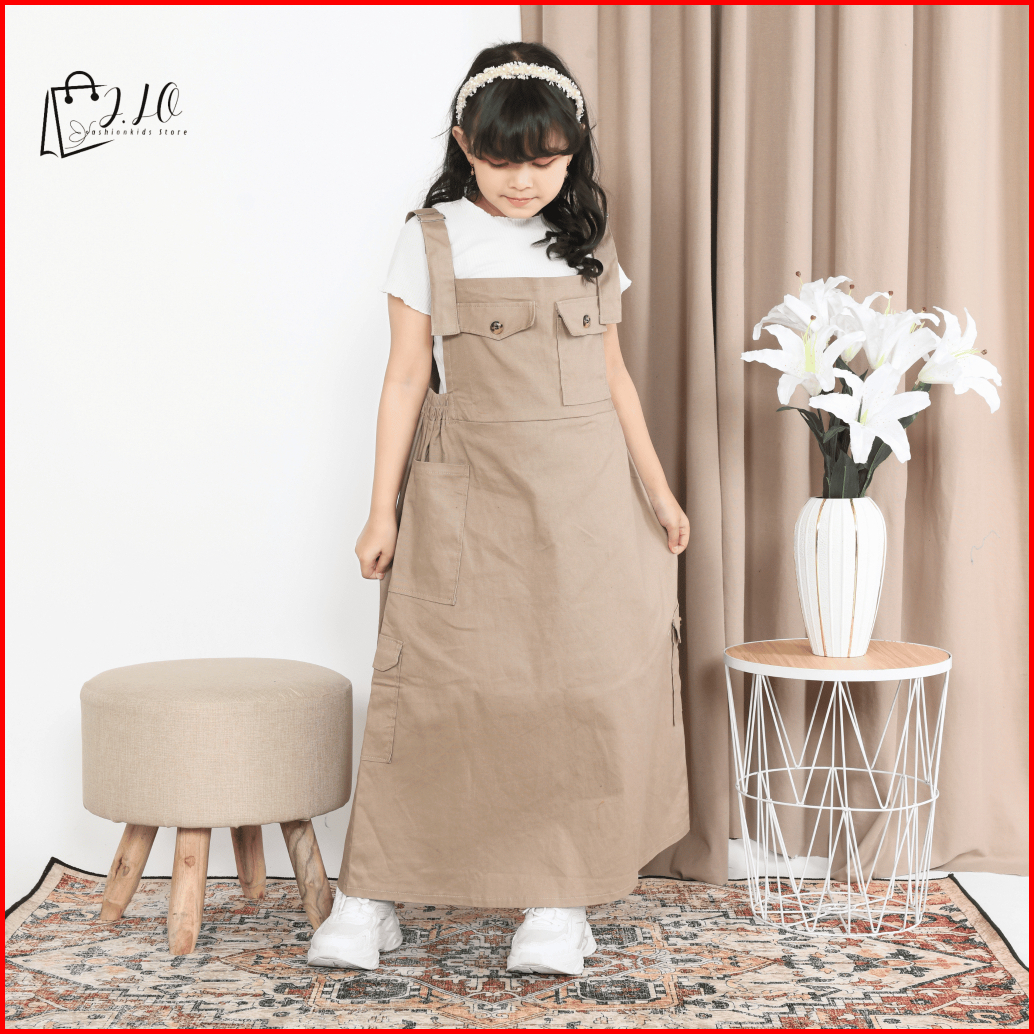 Overall Suspender Cargo Anak Stretch Catton Twill Overall Rok Panjang Anak Perempuan Terbaru Baju Overall Anak Remaja Ta