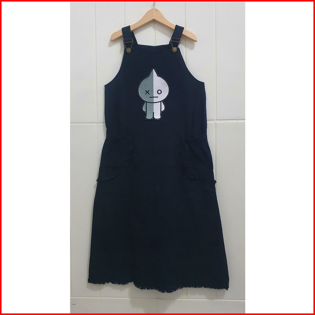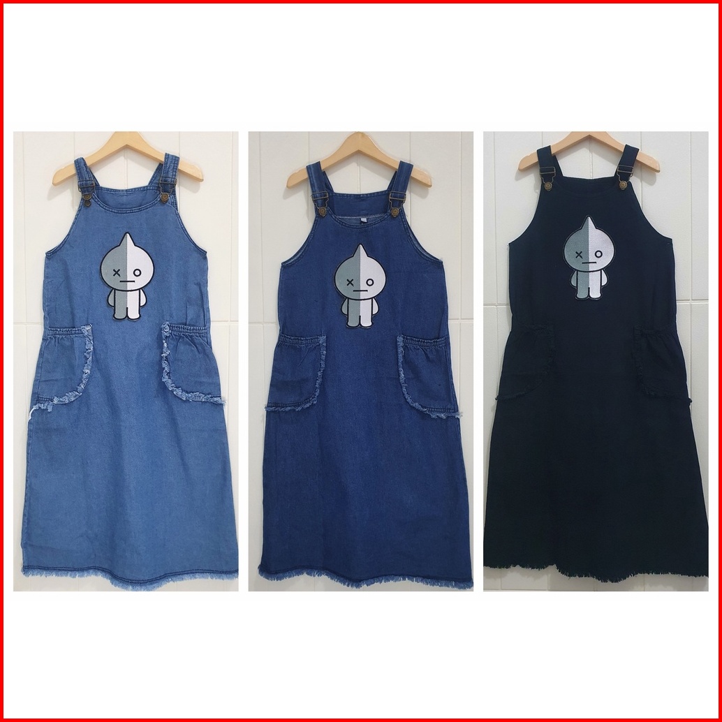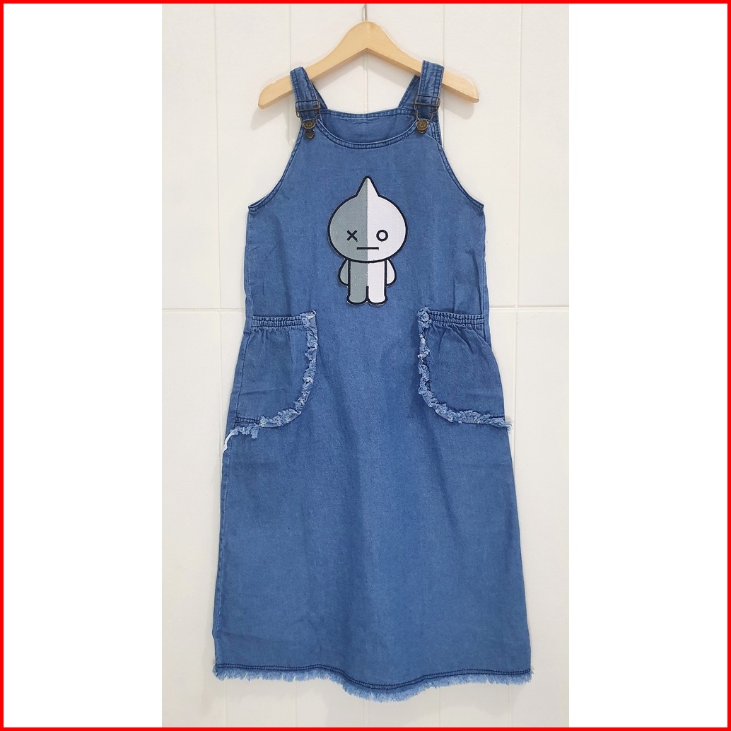 Overall Jumpsuit Jeans Anak Perempuan Bordir Van Bts Model Rawis 4 -14 Tahun