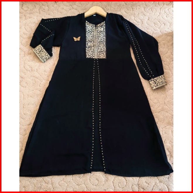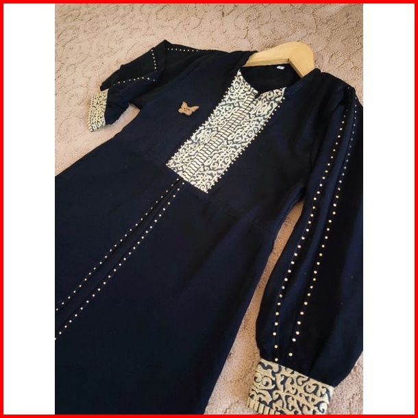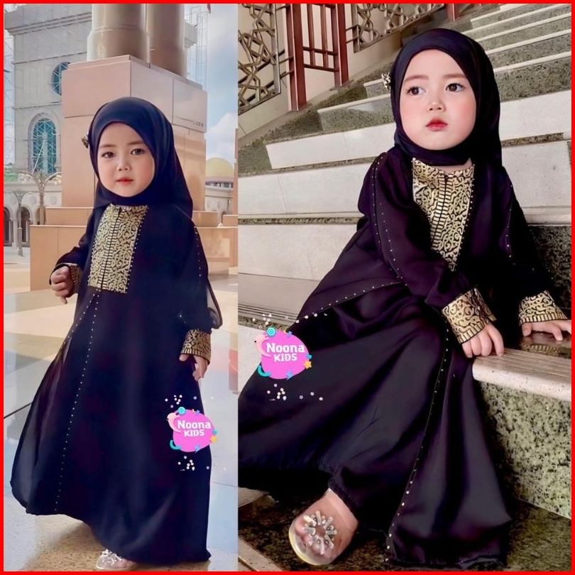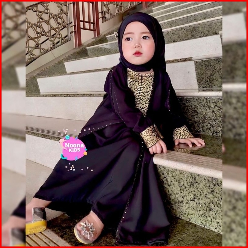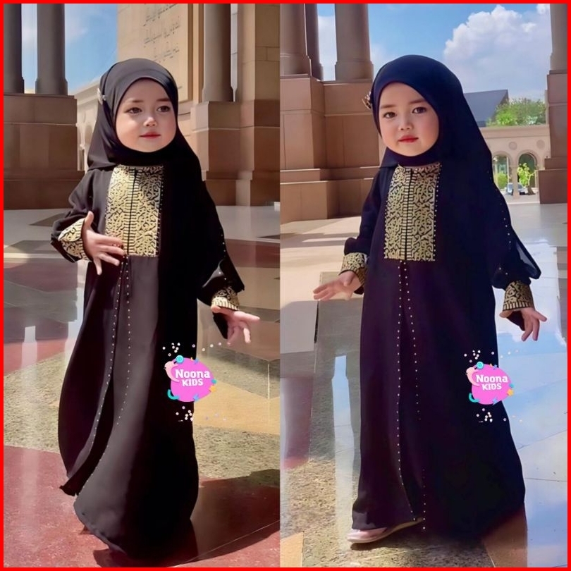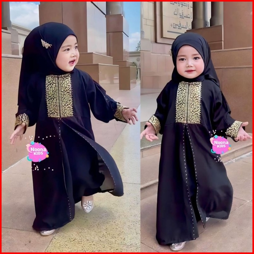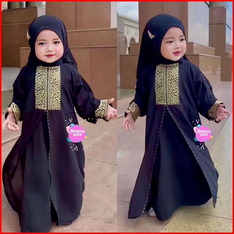 Noona Kids 1-14 Thn Dress Muslim Anak Perempuan Hitam Gamis Abaya Bordir Komputer 78