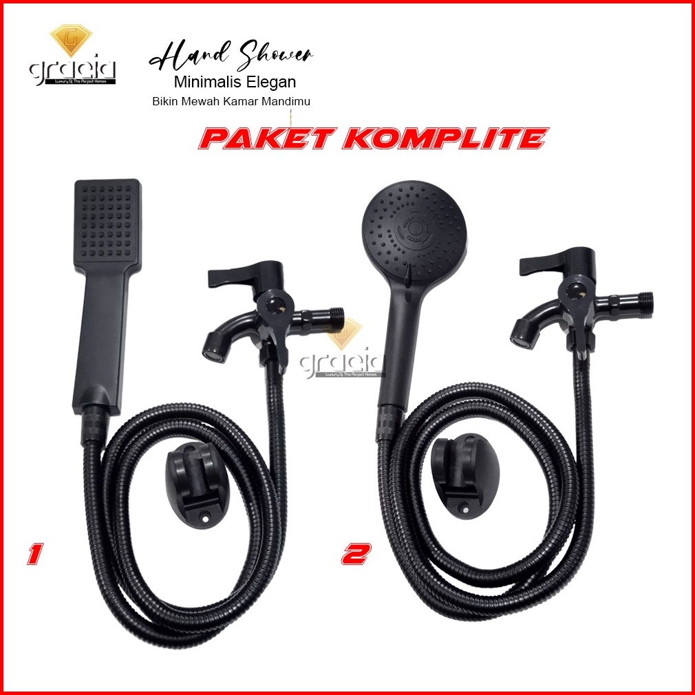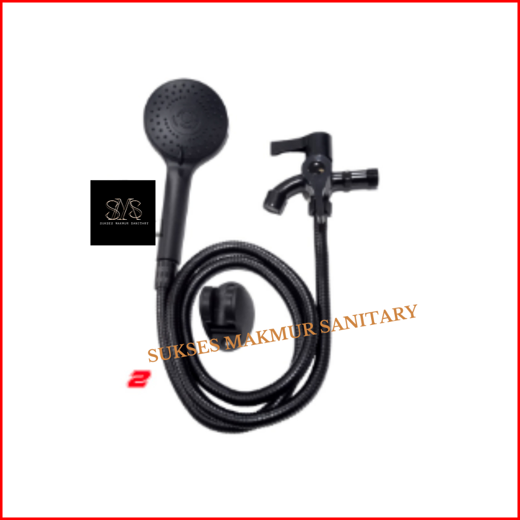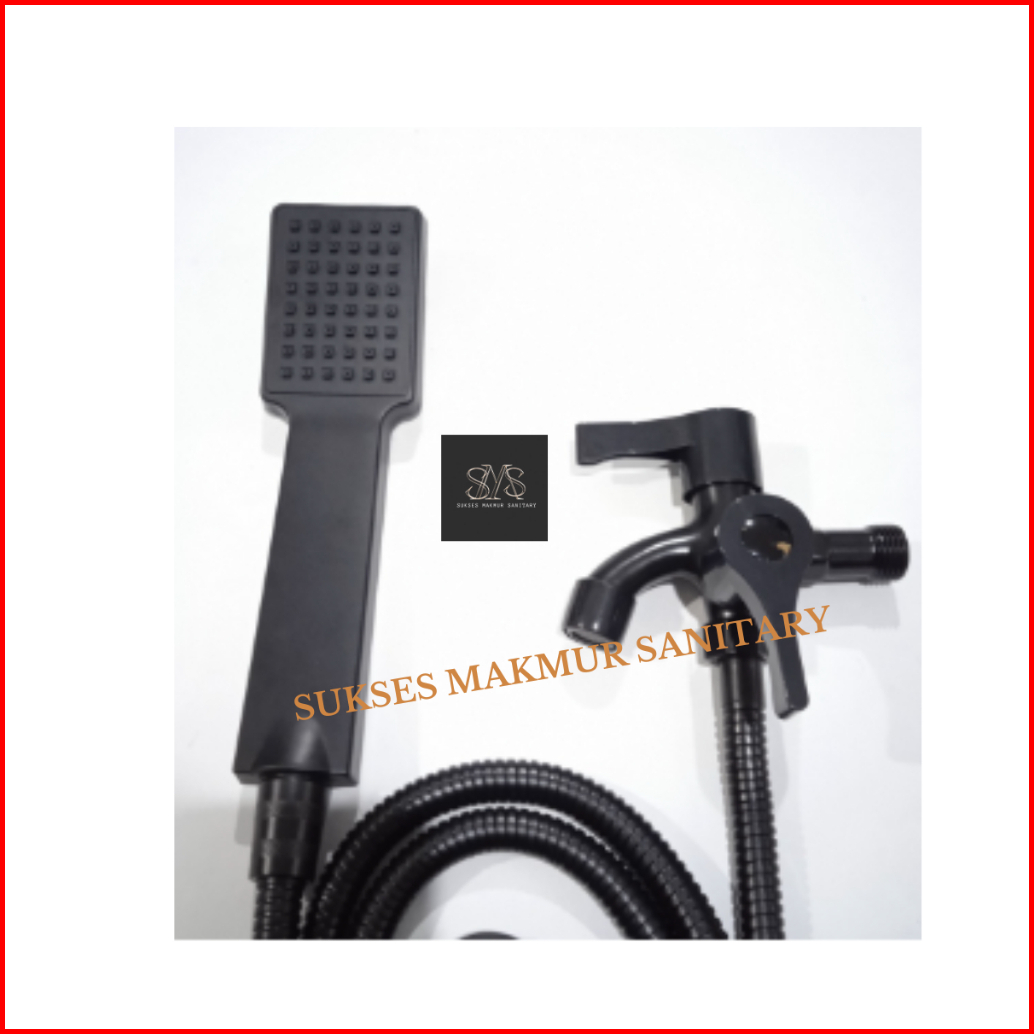 Paket Hand Shower Black - Handshower Mandi Set Semprotan Sower Mandi Dan Kran Cabang Black 1 2 Icnh