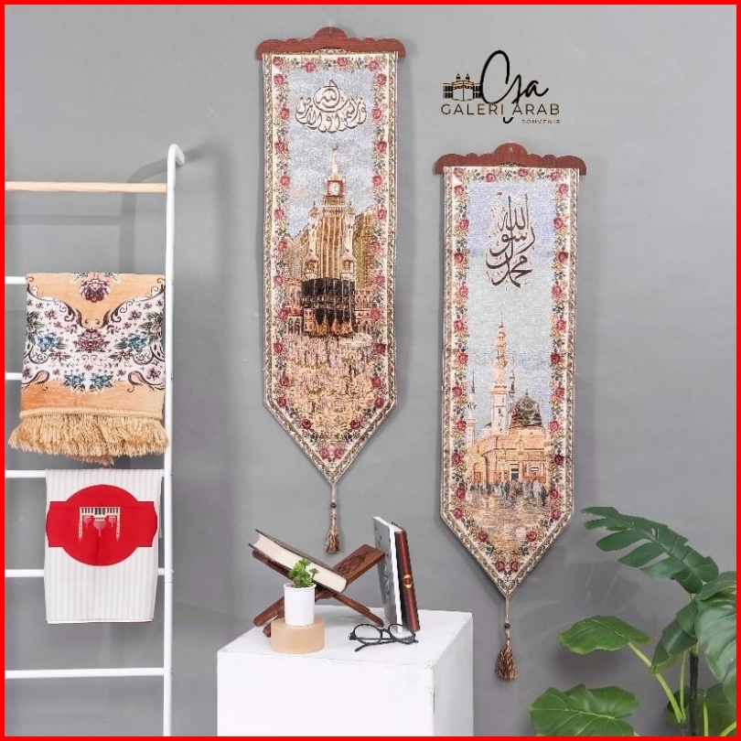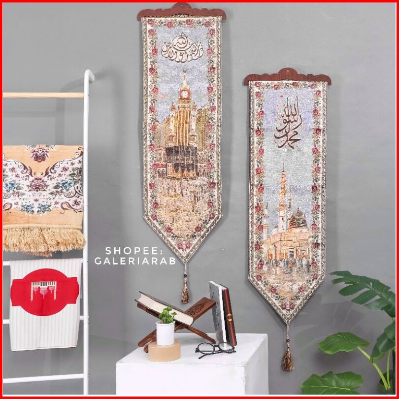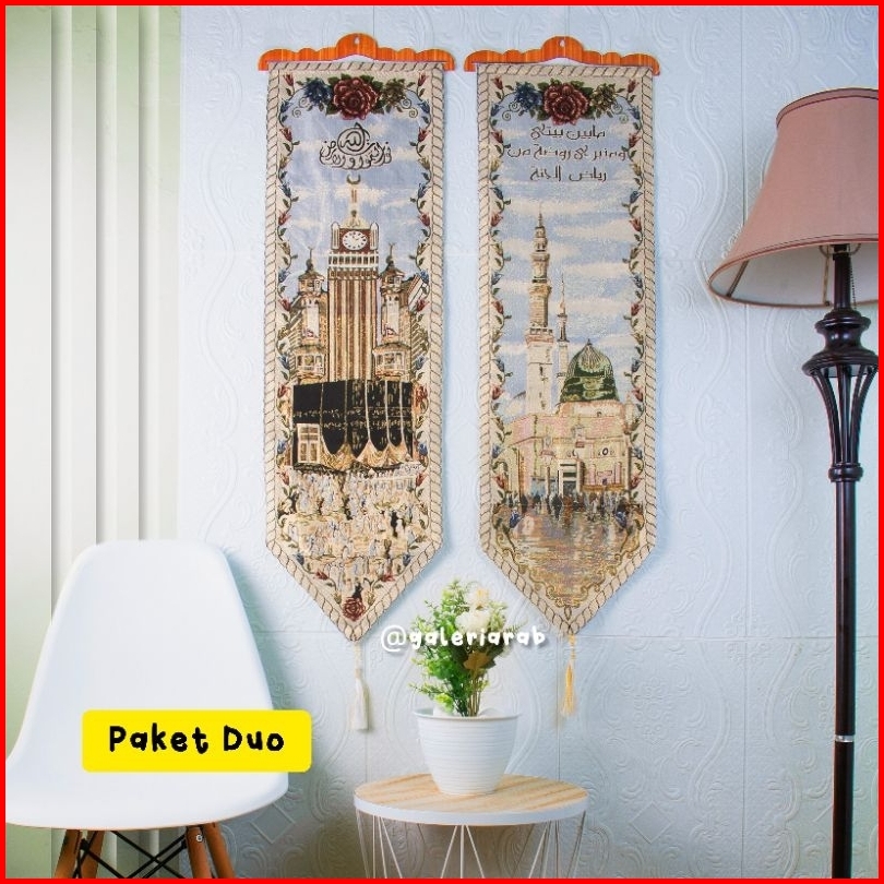 Paket Duo 2 Pcs Kaligrafi Hiasan Dinding Kiswah Kakbah Madinah Nabawi Al Aqhso