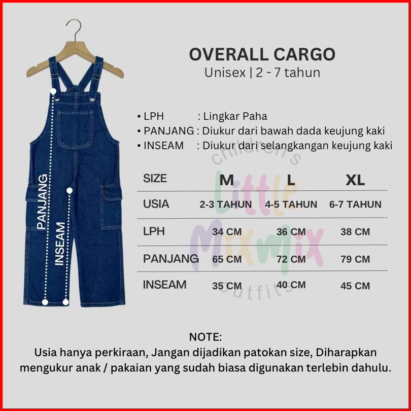 Mixmix Overall Cargo - Celana Overall Werpak Cargo Jeans Anak 2 - 7 Tahun