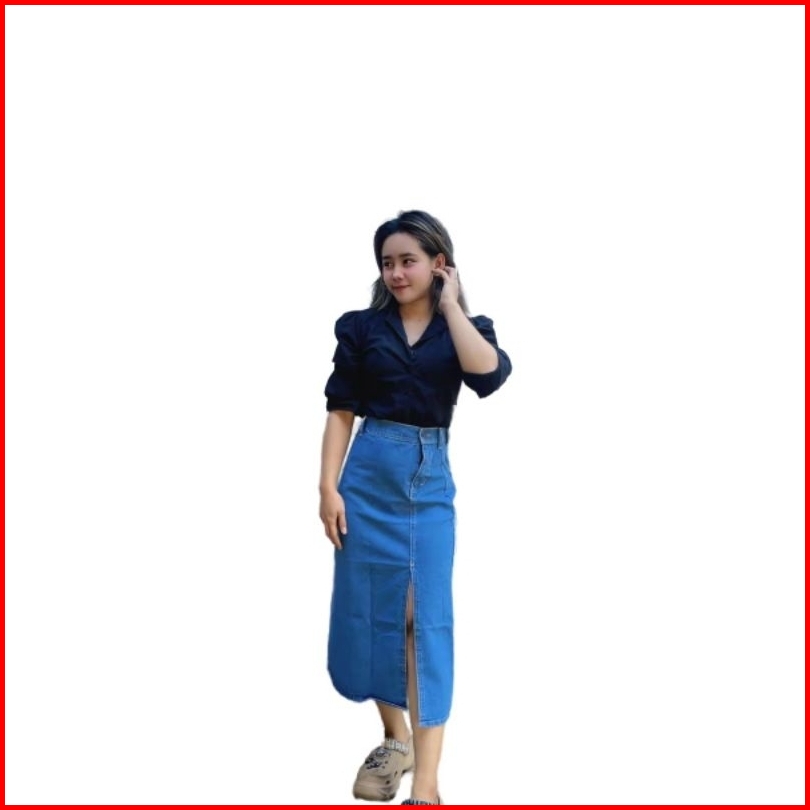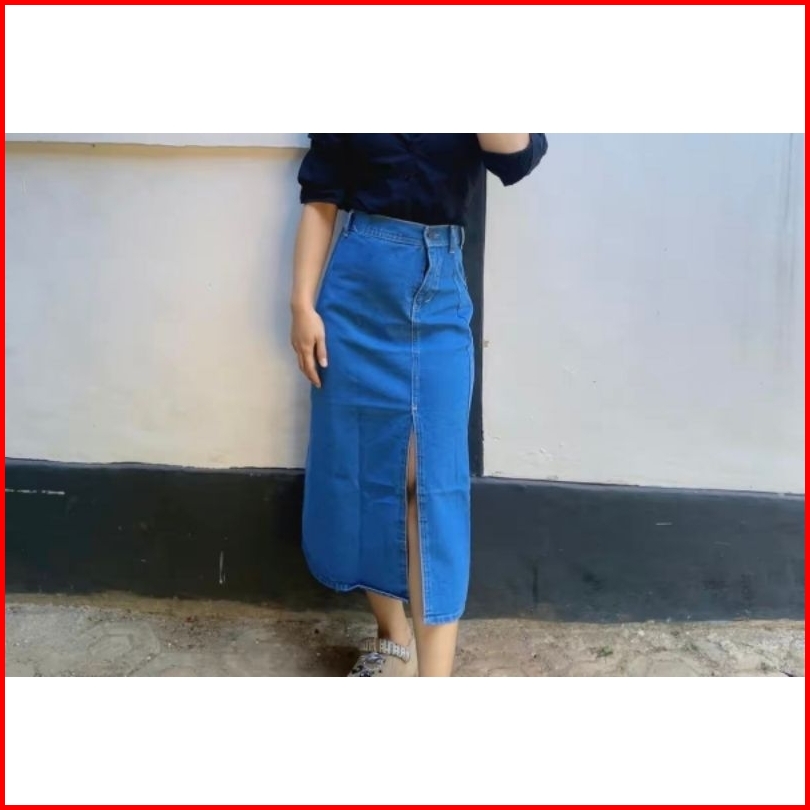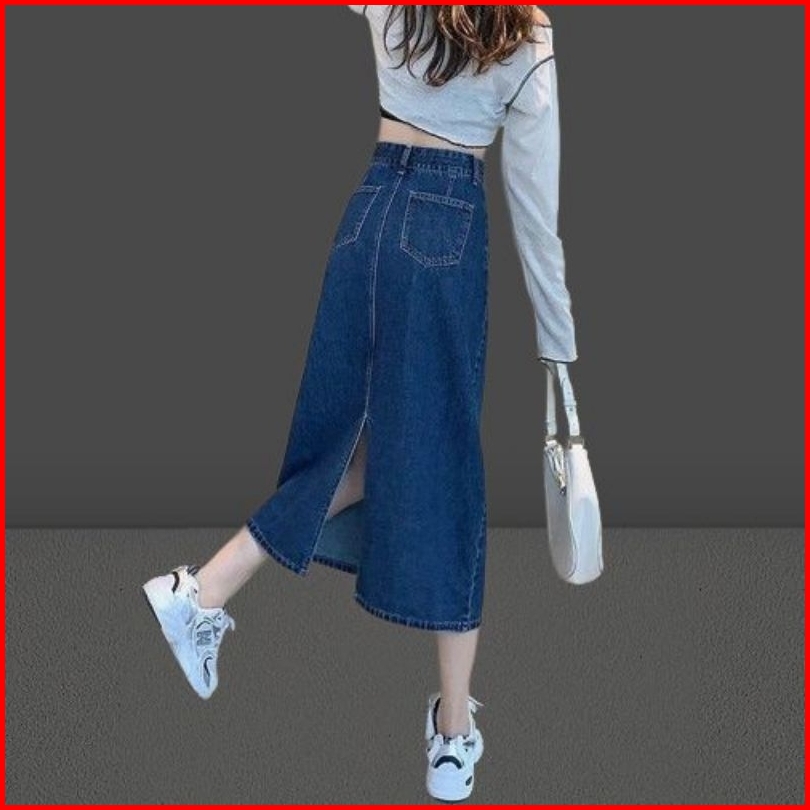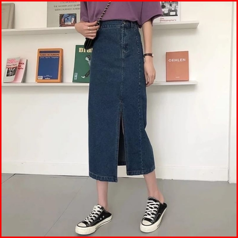 Rok Jeans Highwaist Belah Samping Korean Style Rok A-line Rok Jeans Skirt Rok Jeans Wanita Highwaist Jeans Rok Jeans Kor