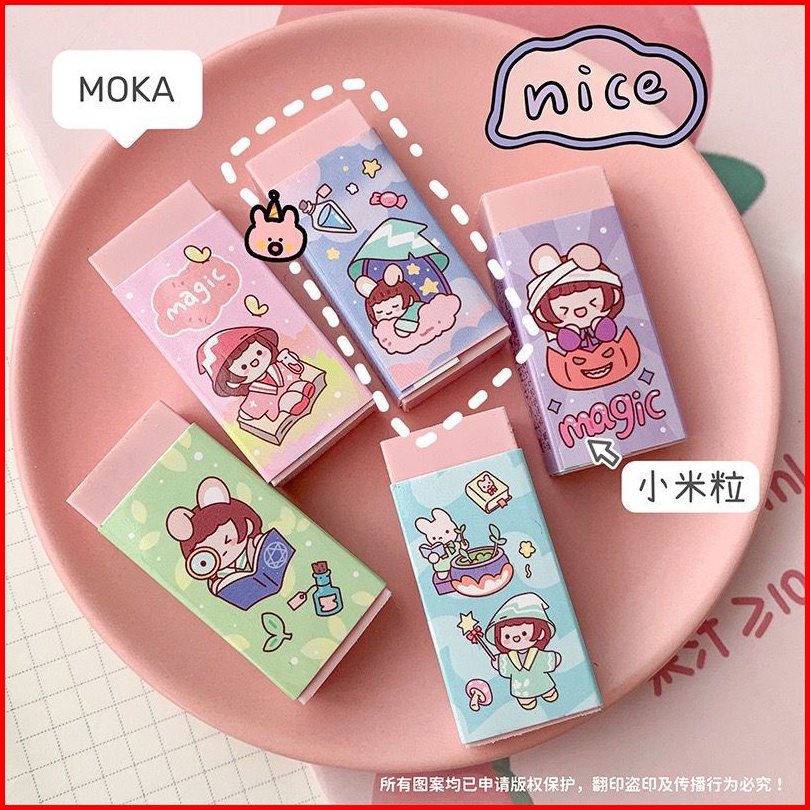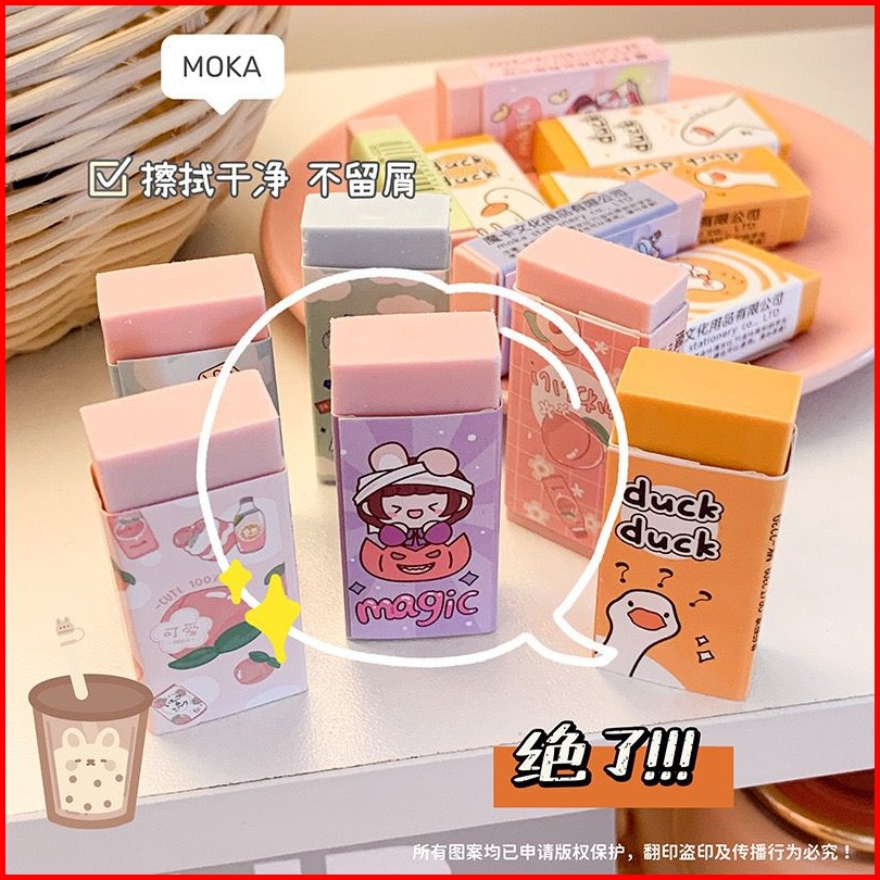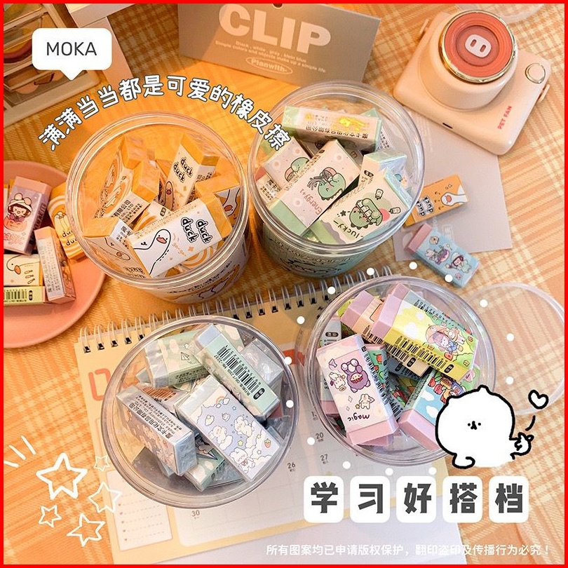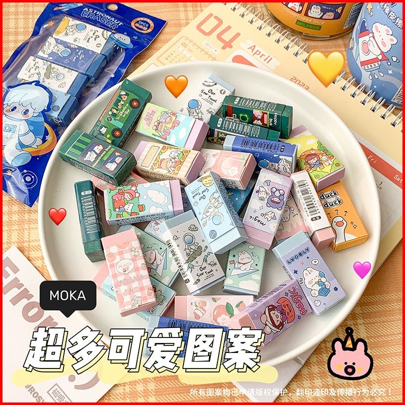 Randomstuff Penghapus Pensil Motif Balok Cartoon Rubber Eraser Karet Lucu Aesthetic Set Toples Pouch Stationary Kit Berk