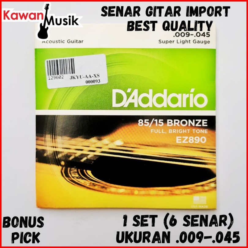 Senar Gitar Dadario Akustik Ukuran .009-.045 85 15 Bronze Ez890