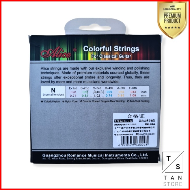 Original 1 Set Senar Gitar Klasik Nylon Warna Warni Alice