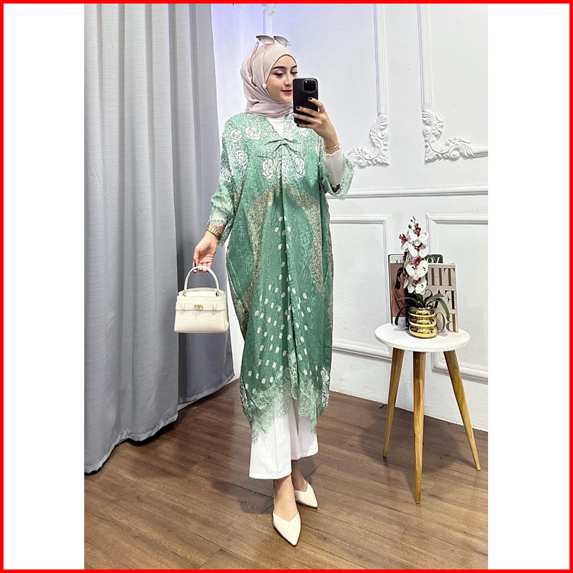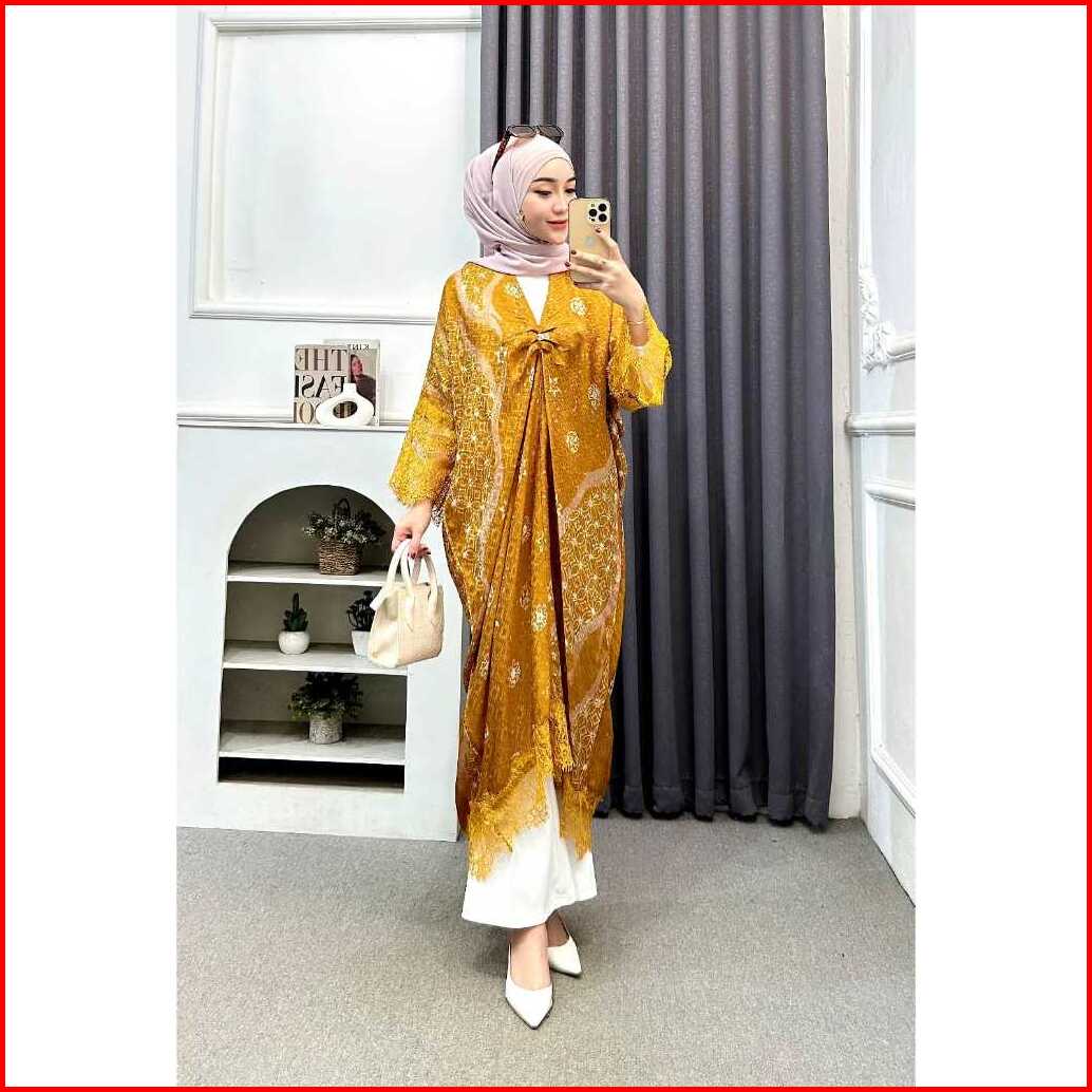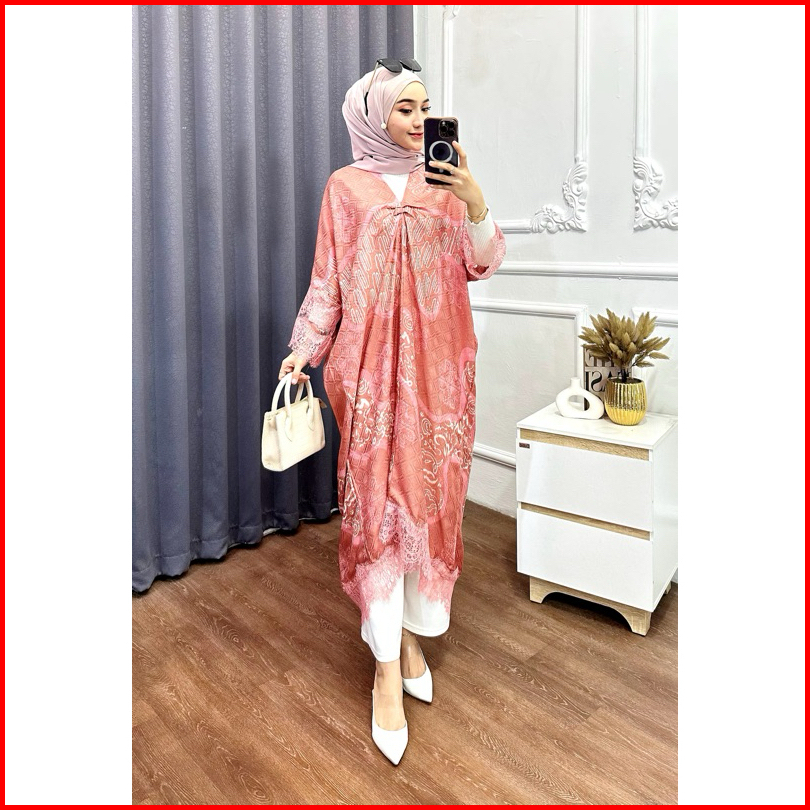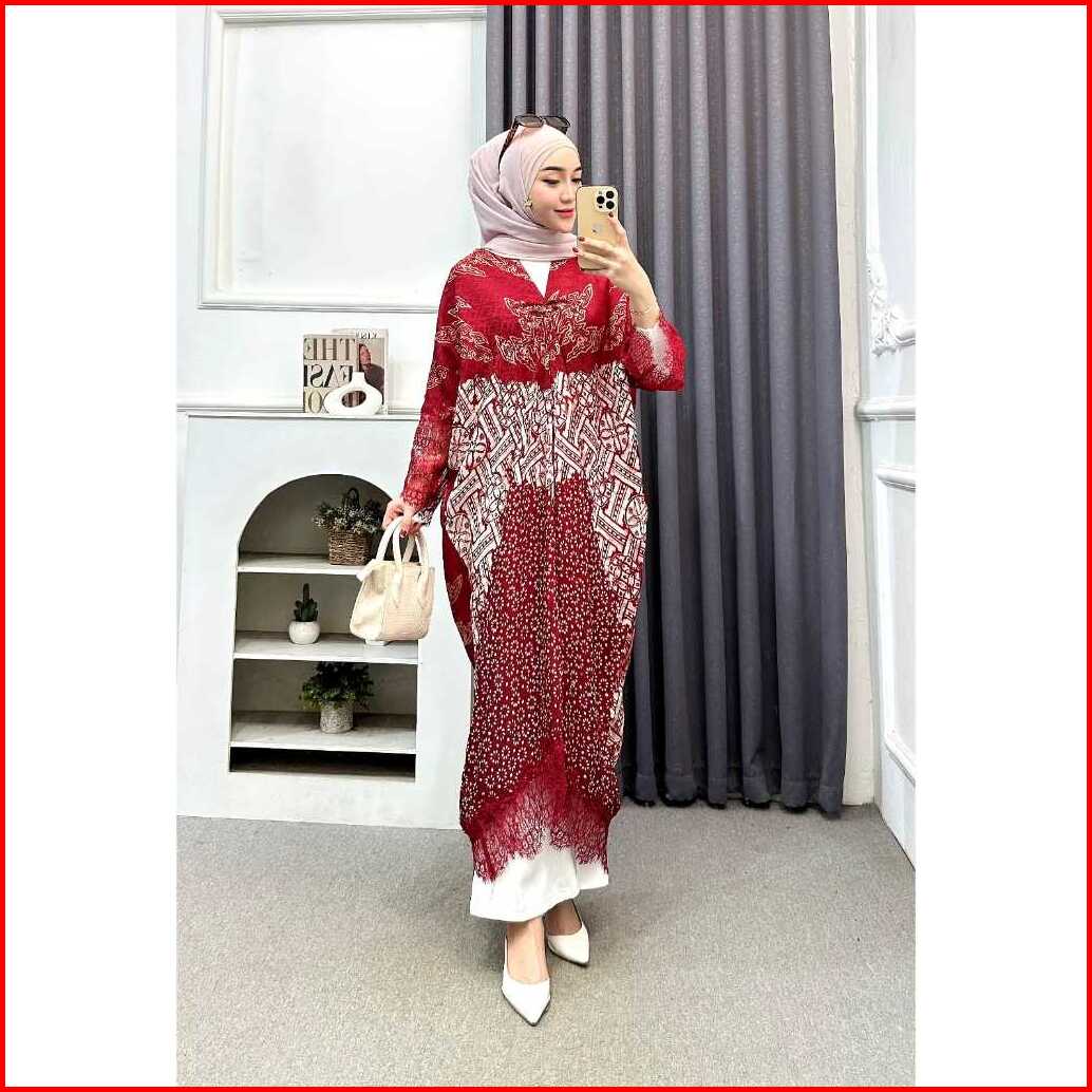 Kaftan Viscose Renda Motif Mega Mendung Maroon Series By Batik Temu Jodo