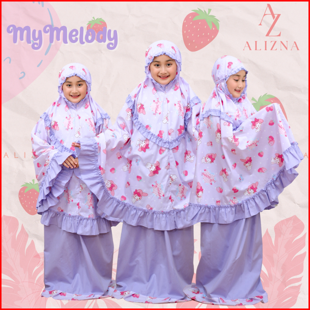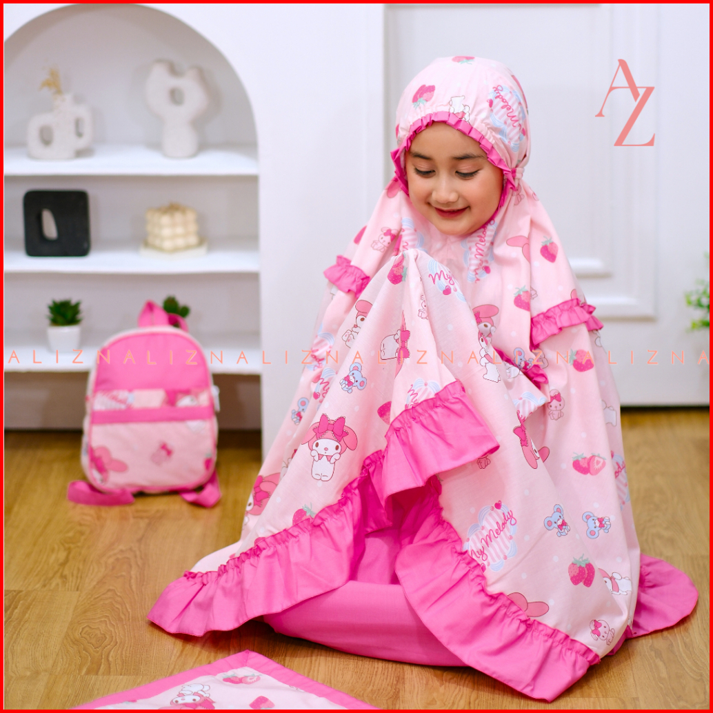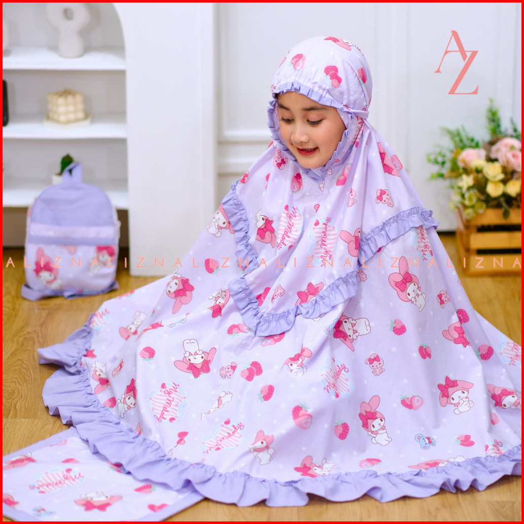 Alizna - Mukena Anak Karakter 3in1 My Melody Ichigo Pink Lilac Free Tas Ransel Dan Sajadah Muka