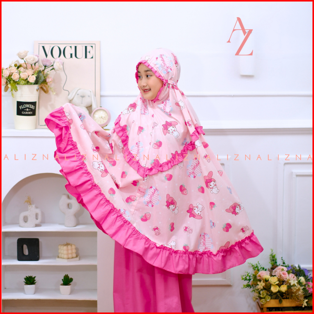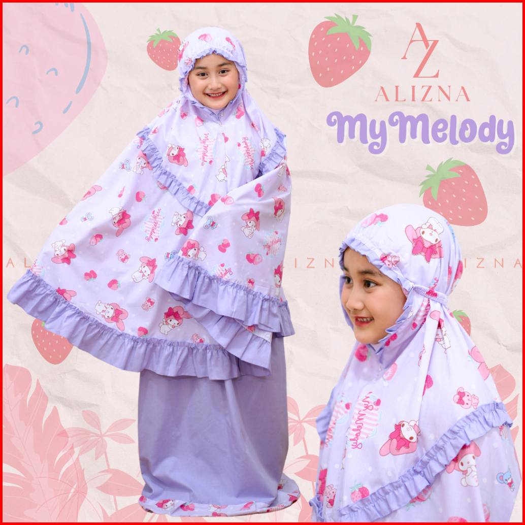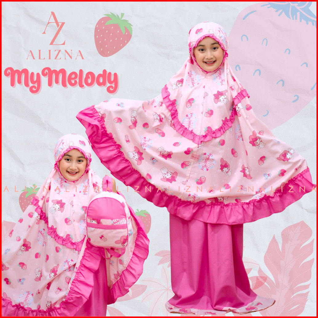 Alizna - Mukena Anak Karakter 3in1 My Melody Ichigo Pink Lilac Free Tas Ransel Dan Sajadah Muka