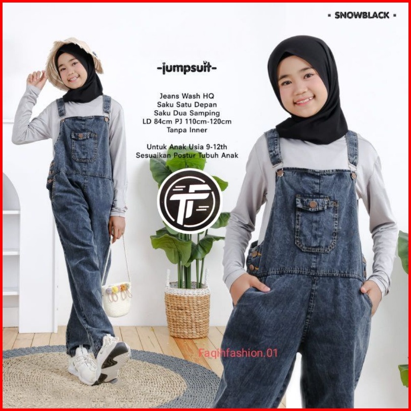 Overall Anak Perempuan Usia 8-13 Tahun Jumpsuit Celana Kodok Jeans Anak