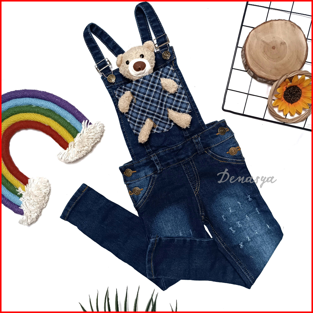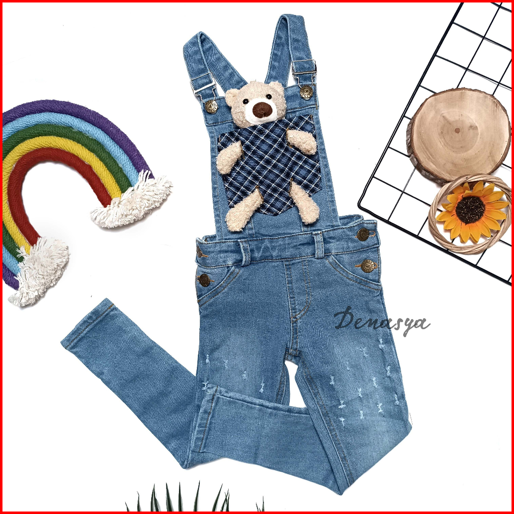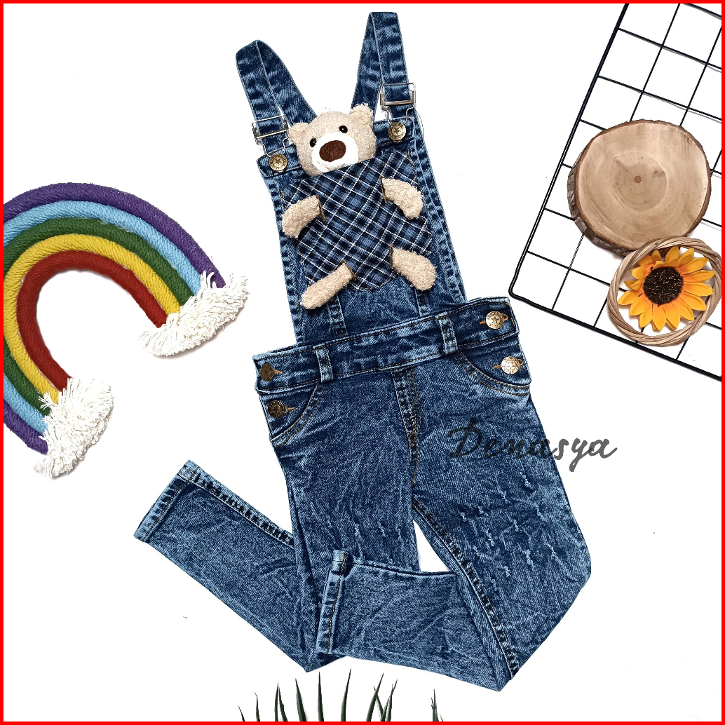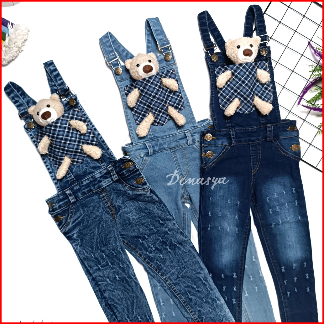 Overall Jeans Anak Perempuan Overall Celana Panjang Sand Wash Motif Boneka Anak Usia 2-12 Tahun