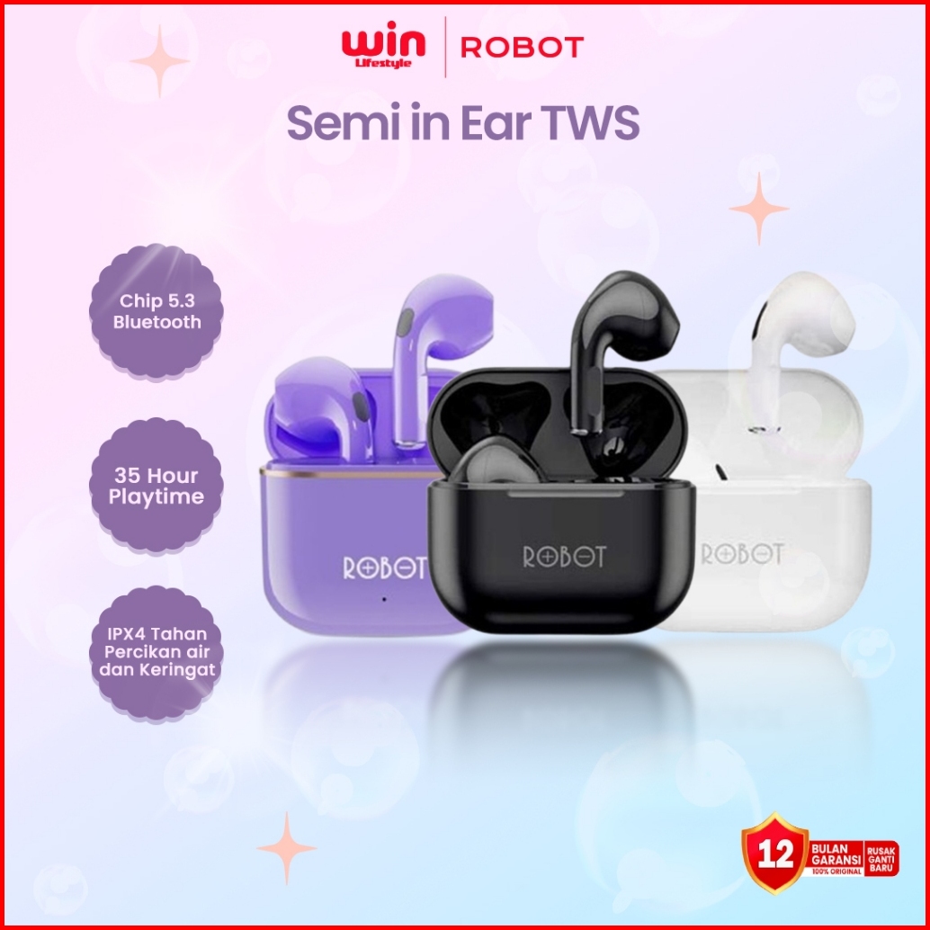 Robot Tws Wireless Earphone Airbuds T50s Original Bt 5.3 True Wireless Headset Bluetooth Earbuds Ipx4 Waterproof - Garan