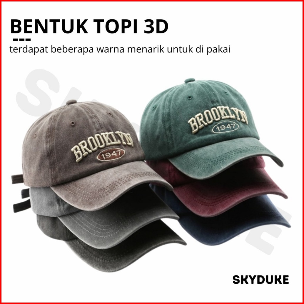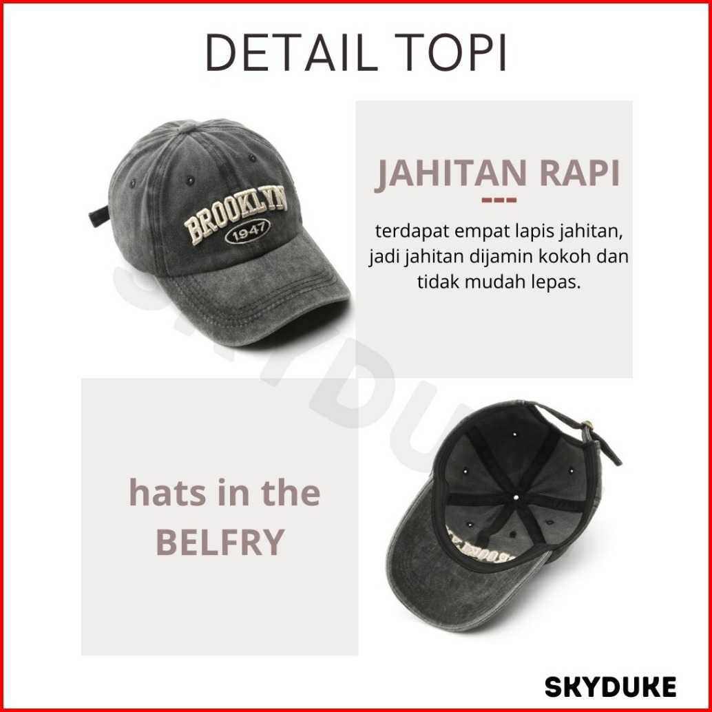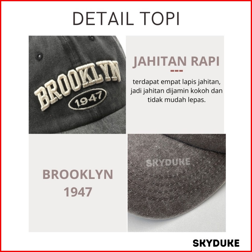 Skyduke-pria Wanita Topi Baseball Hat Model Wash Denim Luntur Bahan Lembut Bordir Brooklyn 1947