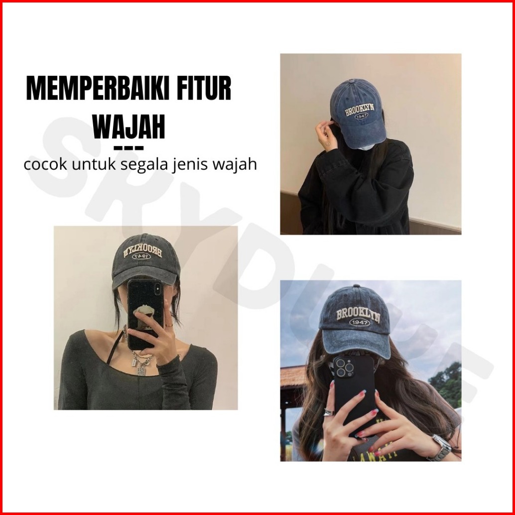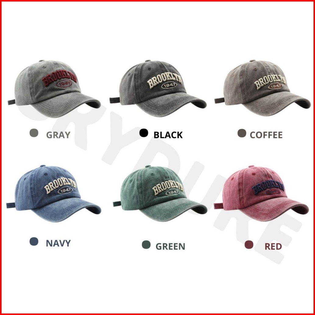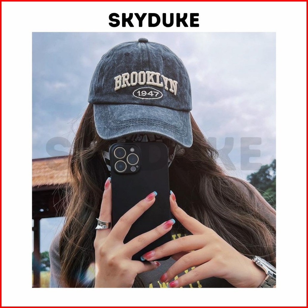 Skyduke-pria Wanita Topi Baseball Hat Model Wash Denim Luntur Bahan Lembut Bordir Brooklyn 1947