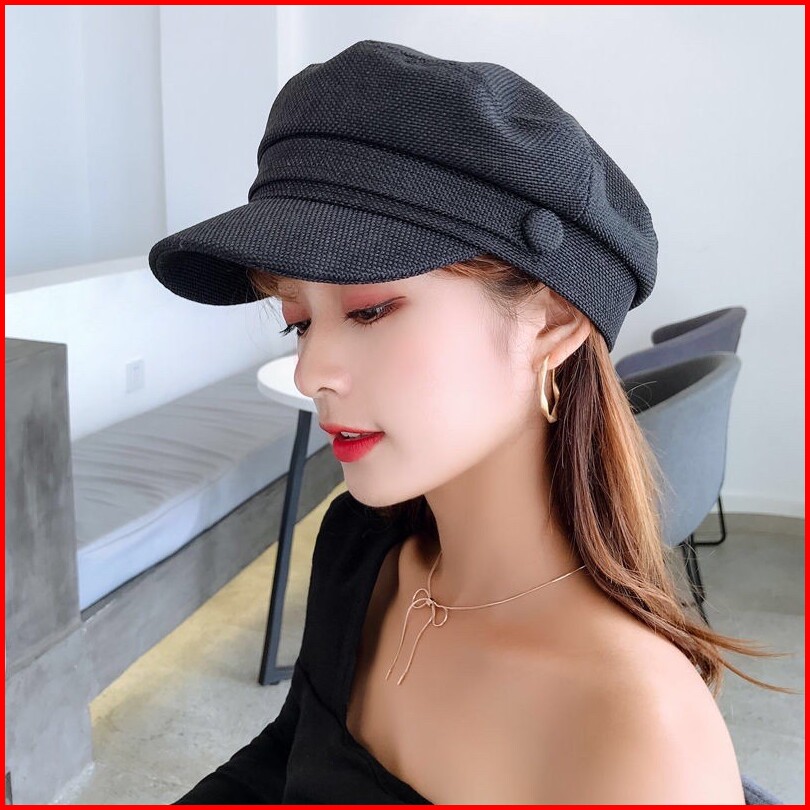 Topi Beret Oktagonal Bahan Katun Pu Gaya Retro Inggris Untuk Wanita S17 Maystar