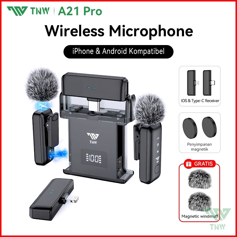 Tnw A21 Pro Wireless Microphone Magnetic Mic Clip On Dual Mikrofon Lavalier Microphone Wireless Mikrofon Ipone Dan Charg