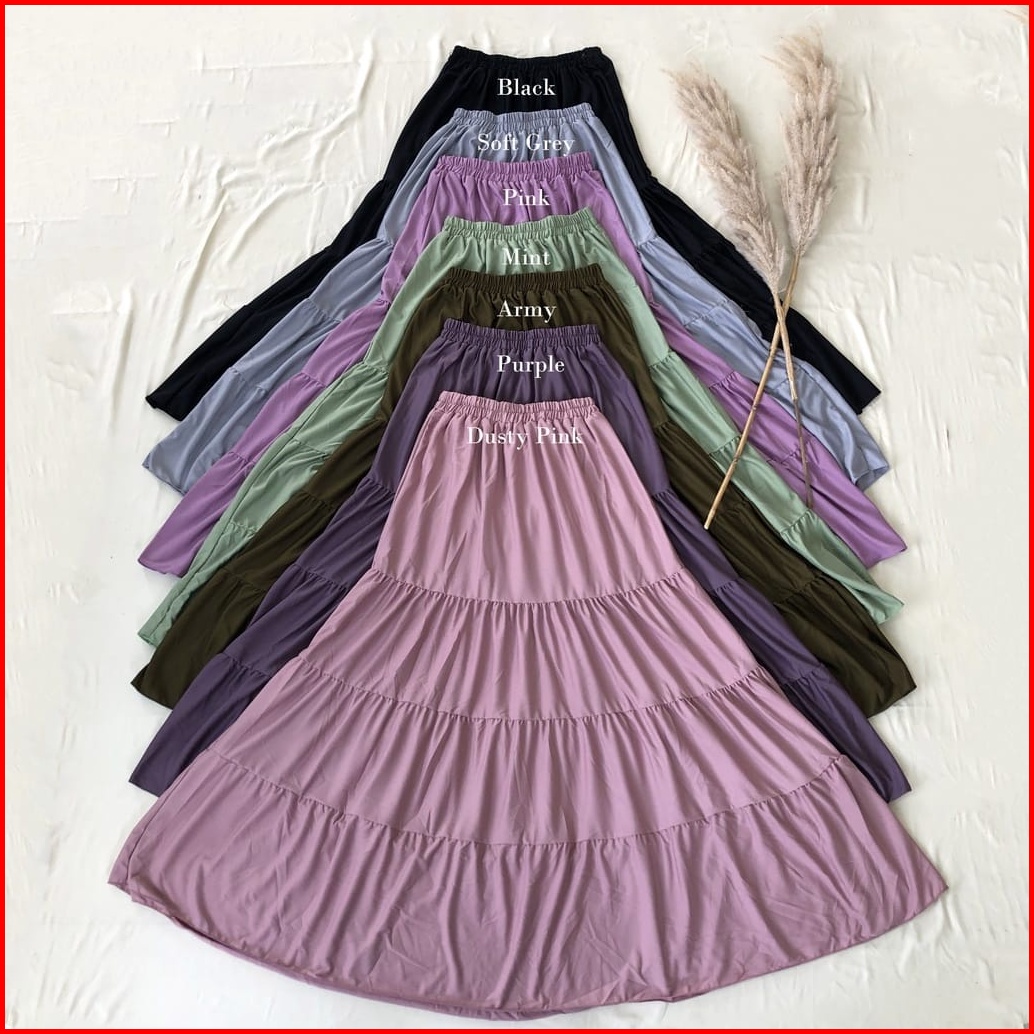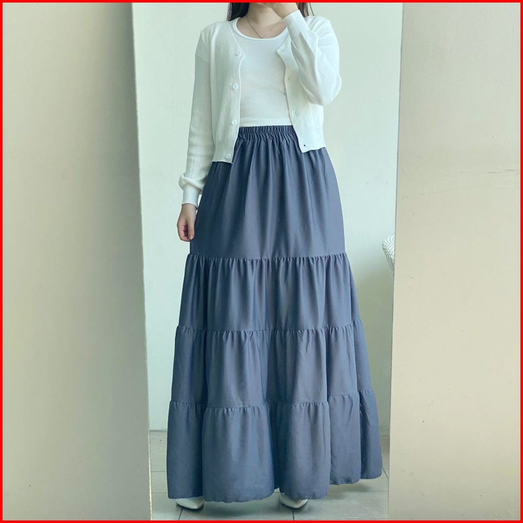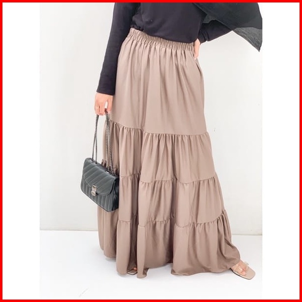 Rok Panjang Beraksen Kerutan 4 Susun Rok Muslim Terbaru Terlaris