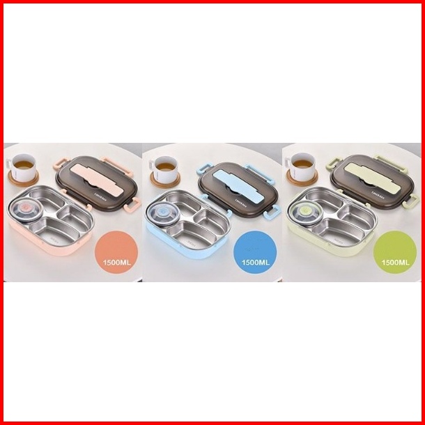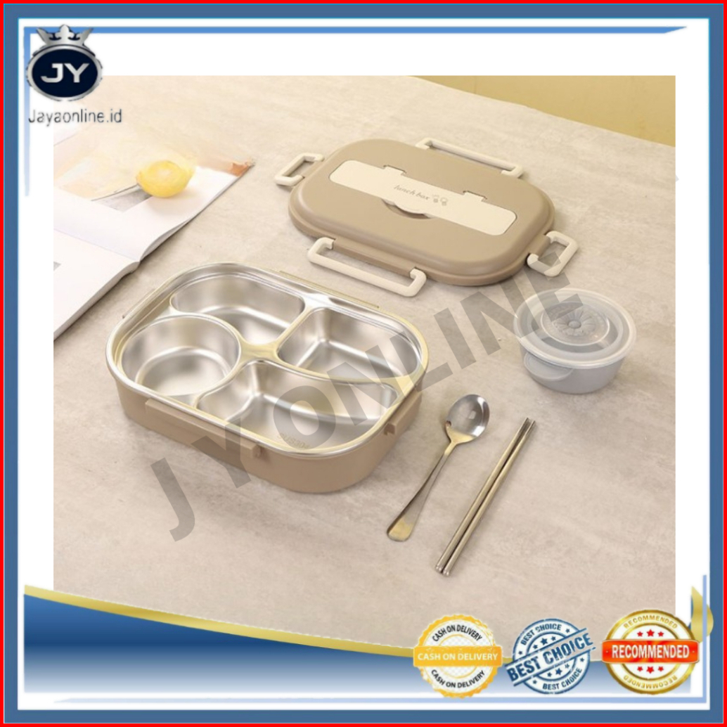 Jy Ss34 Kotak Makan 4 Sekat 1500 Ml Lunch Box Stainless 304 Tahan Panas Dan Anti Tumpah Kualitas Premium Free Sendok Sum