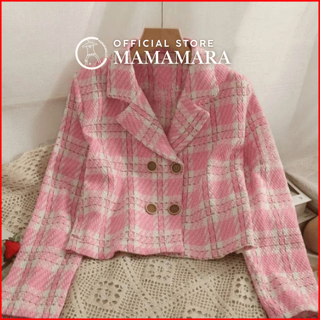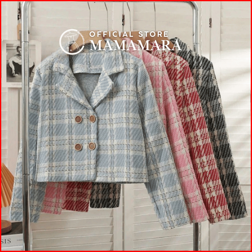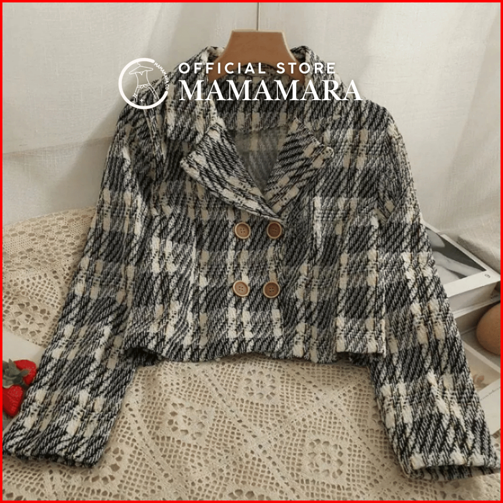 Mamamara - Blazer Tweed Elegant Tebal Simple Classy Kotak Slim Fit