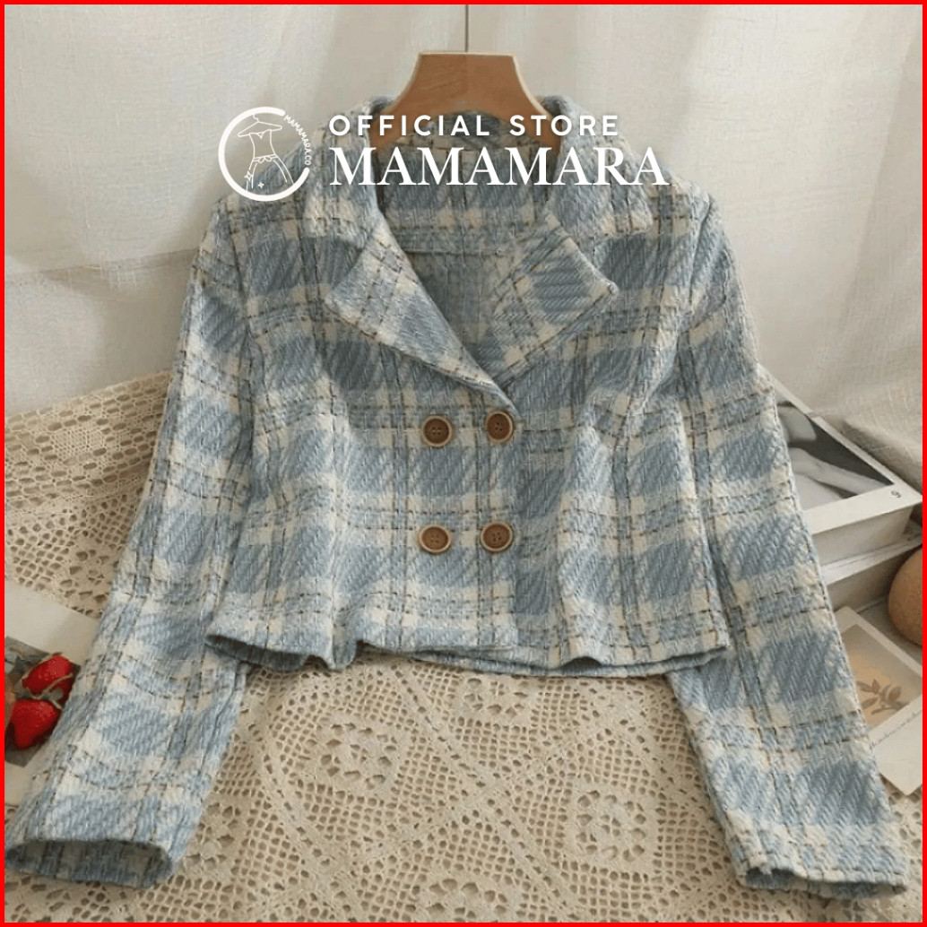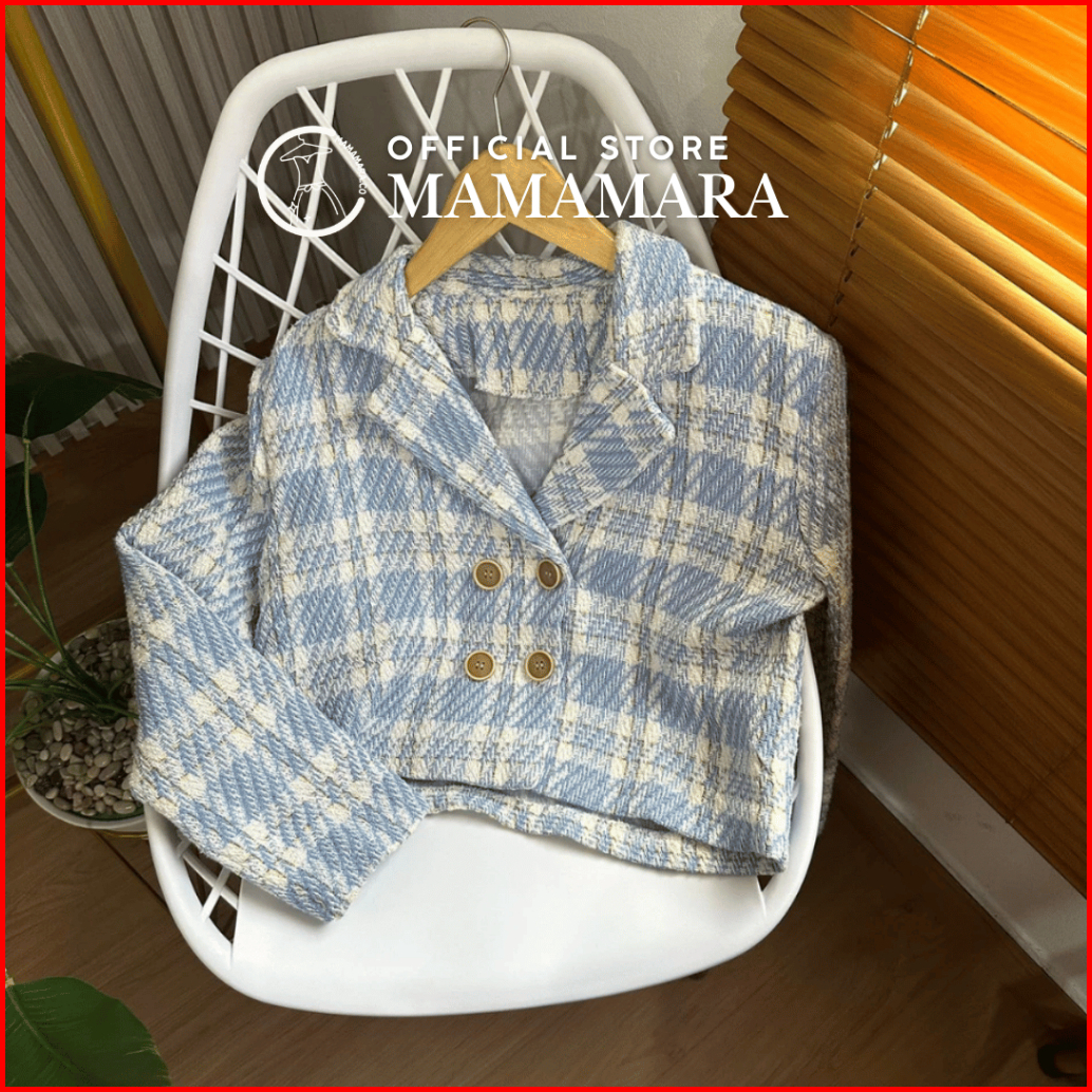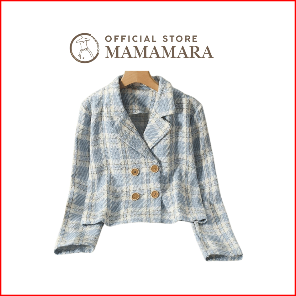 Mamamara - Blazer Tweed Elegant Tebal Simple Classy Kotak Slim Fit