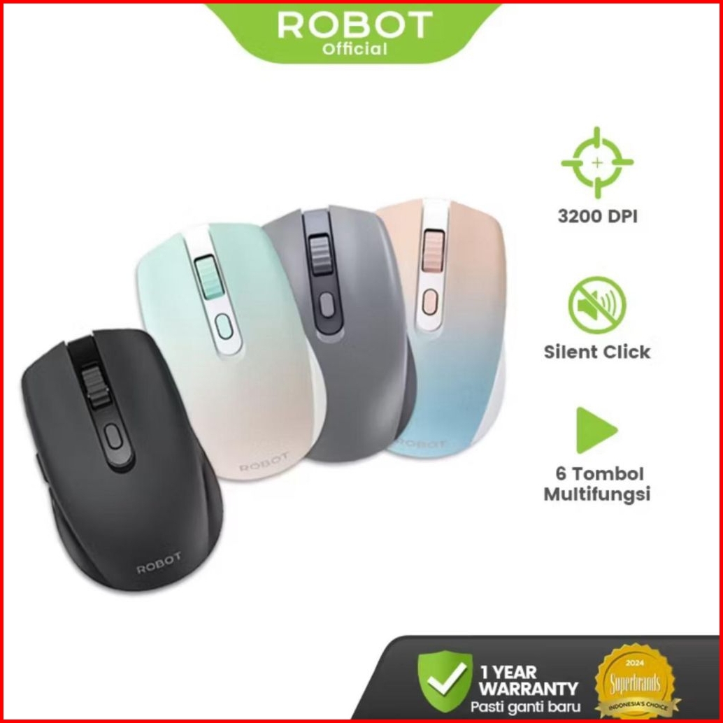 Mouse Wireless Robot M370 2.4g 3200dpi Silent Key Garansi 1 Tahun