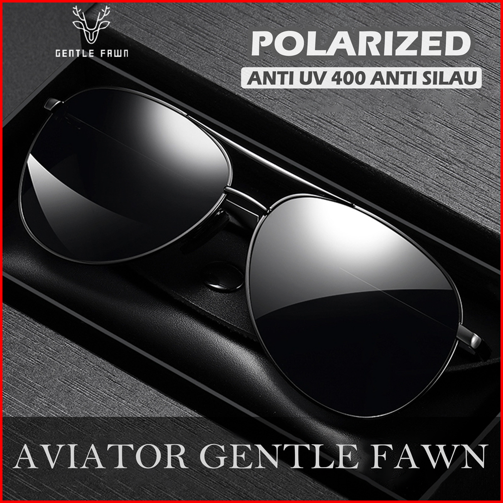 Gentle Fawn Kacamata Hitam Sunglasses Polarized Anti Silau Uv 400 Anti Silau Style Pria Bentuk Aviator Logam Memori Meta