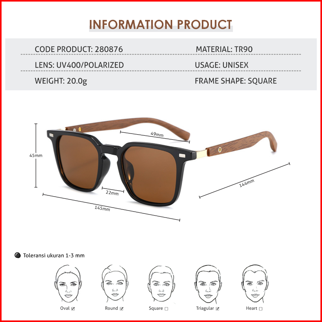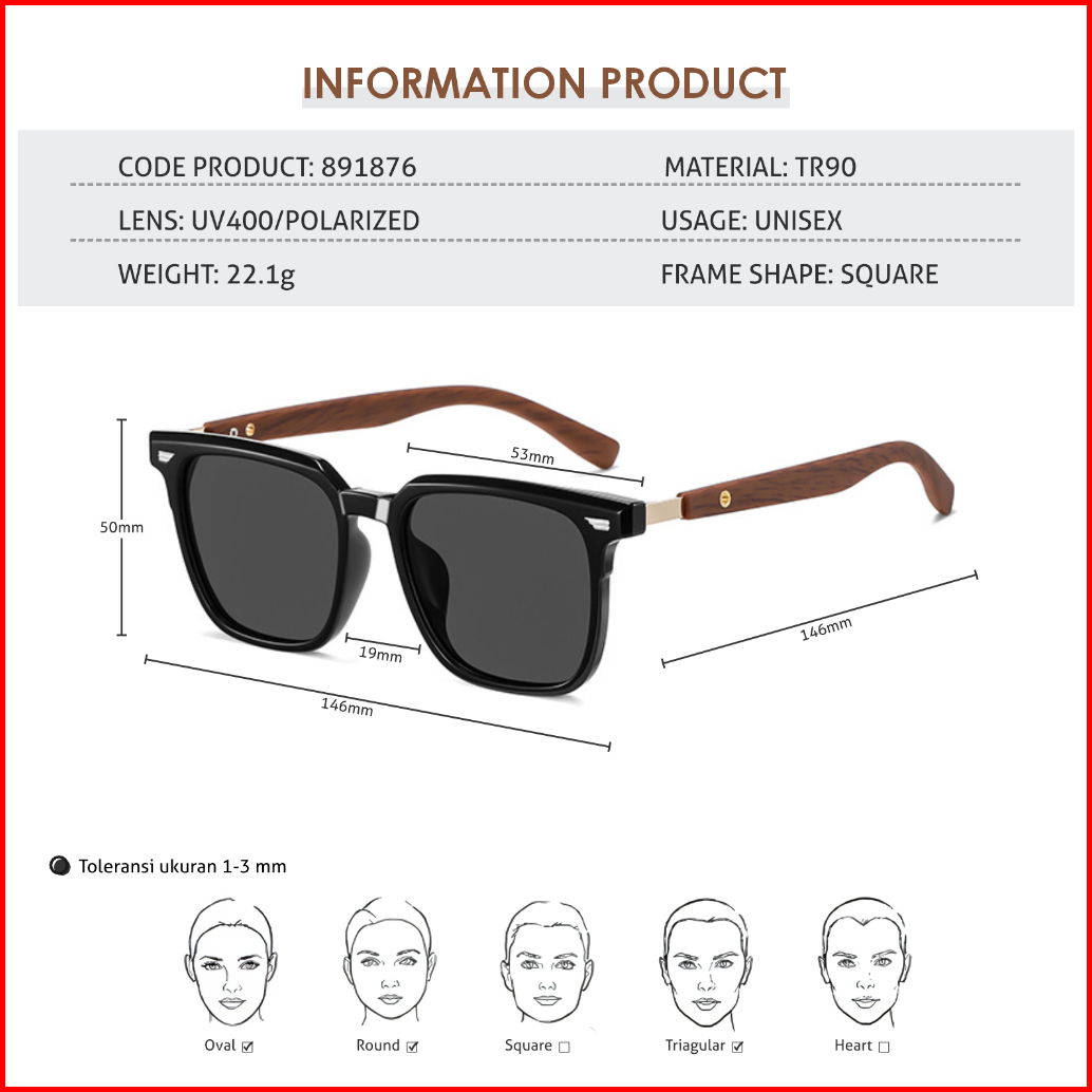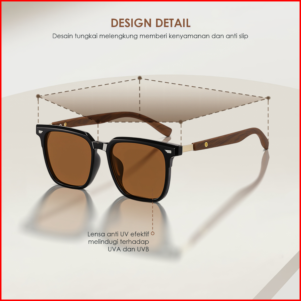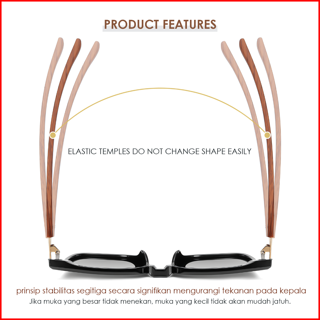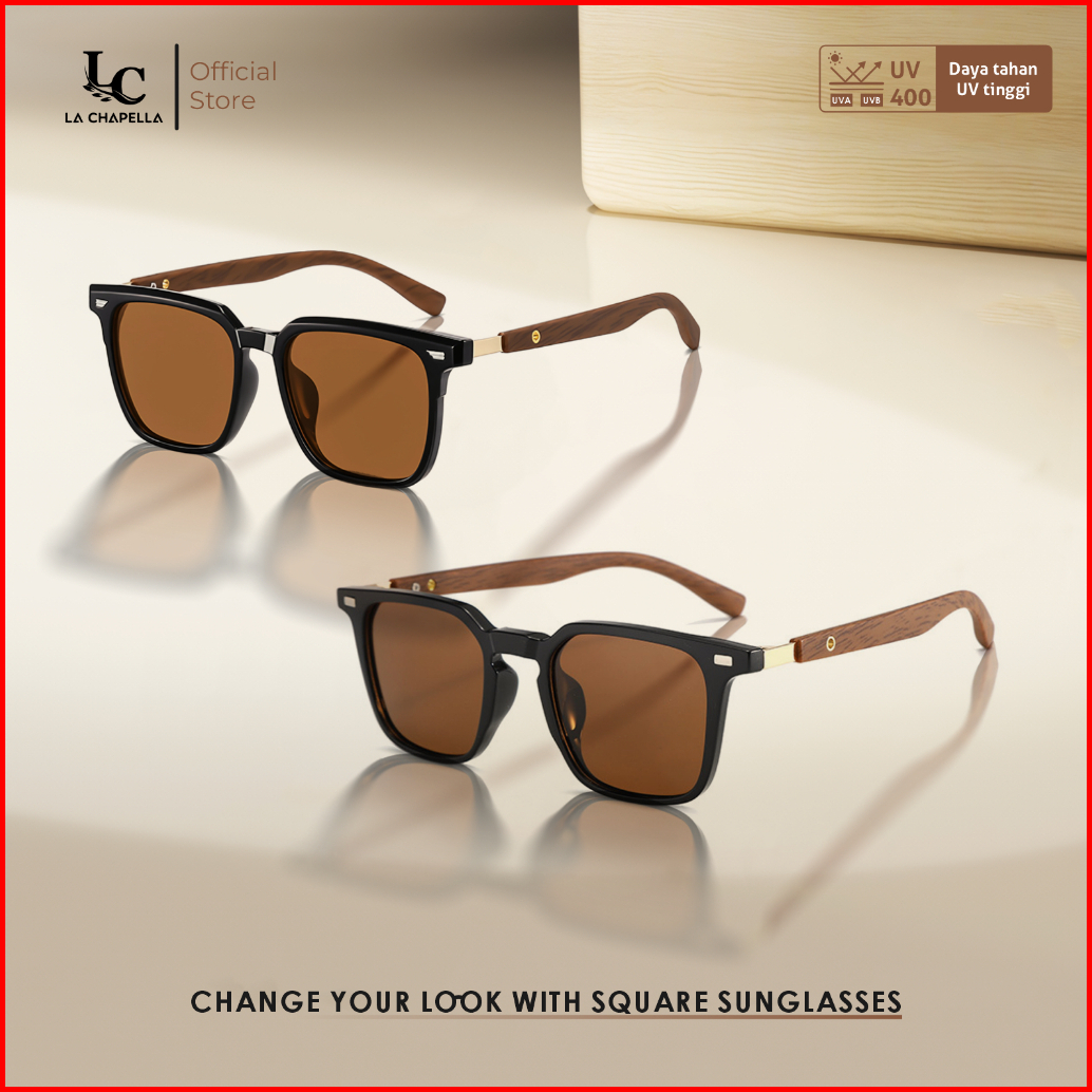 La Chapella Kacamata Hitam Sunglasses Pria Wanita Anti Uv400 Polarized Tungkai Kayu Wood Tr-90 Kotak Eco-life Sunglasses