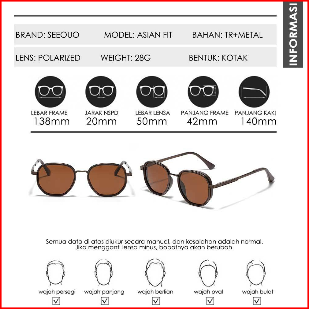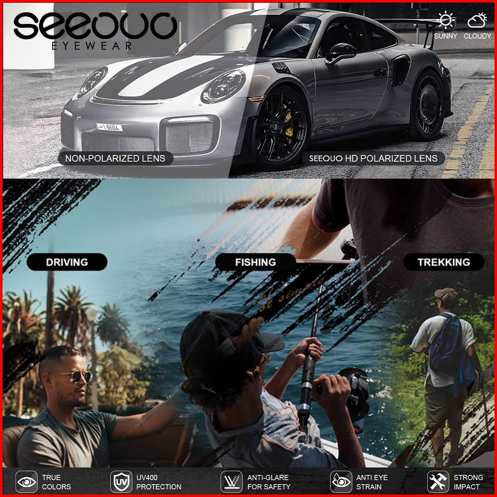 Seeouo Sunglasses Polarized Uv Protection Model Kotak Anti Silau Metal Tr90 Fashion Stylish Unisex Pria Wanita 6015