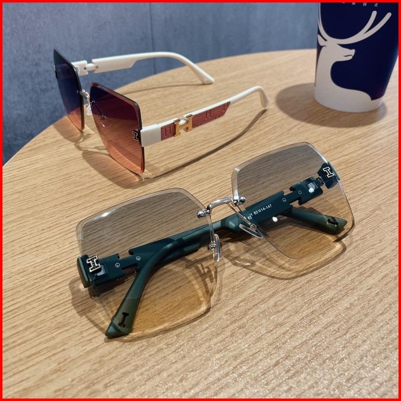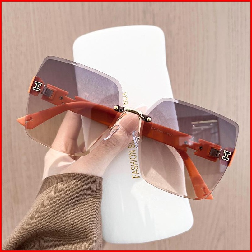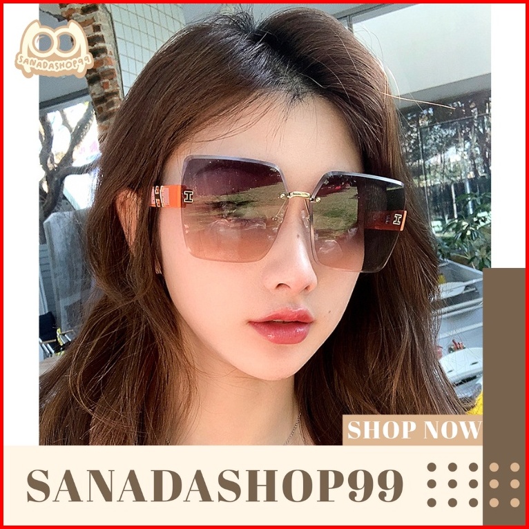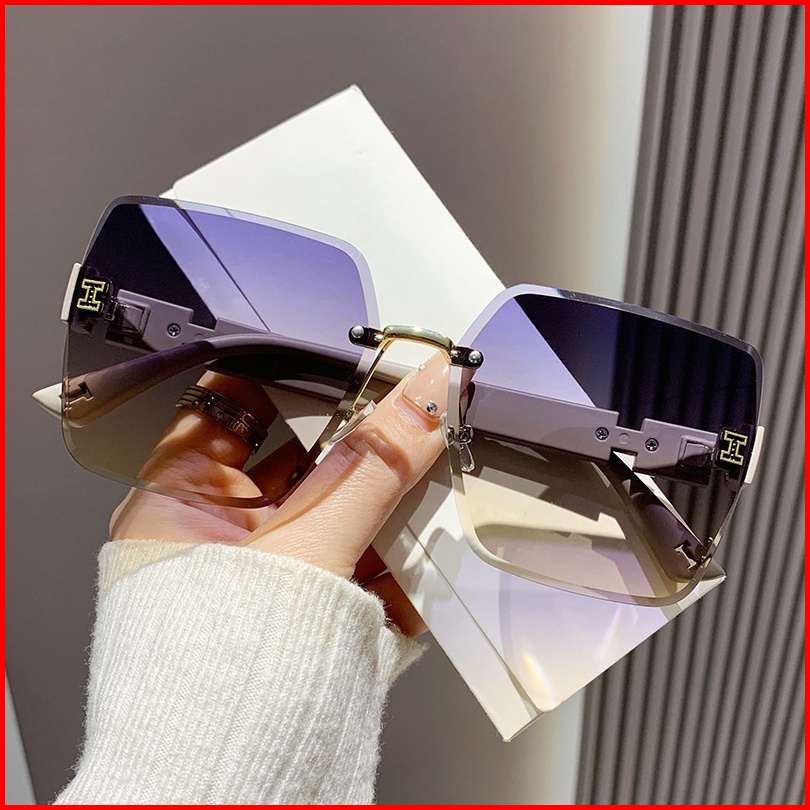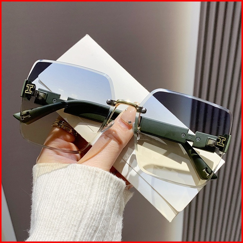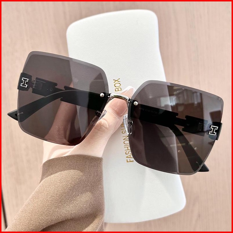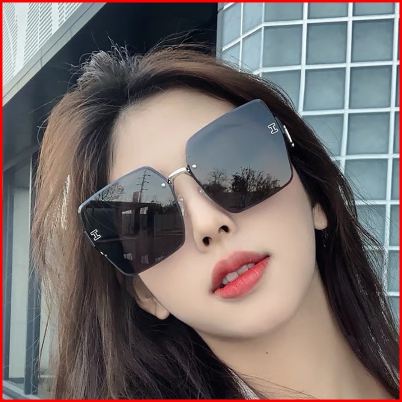 Km63 Kacamata Hitam Pelindung Uv Tanpa Bingkai Kacamata Oversize Korean Style Fashion